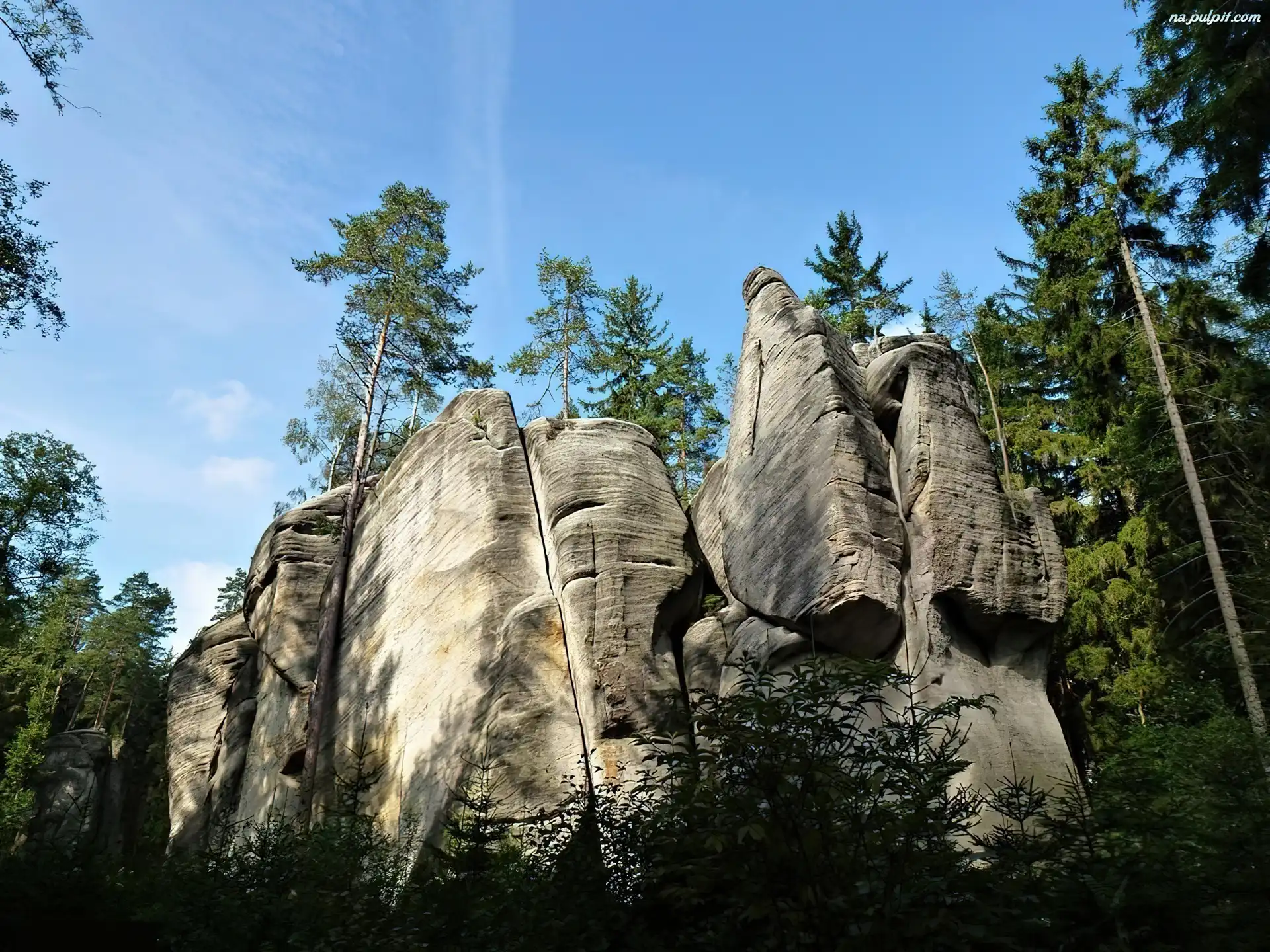 Czechy, Drzewa, Skały, Adrspach Na Pulpit