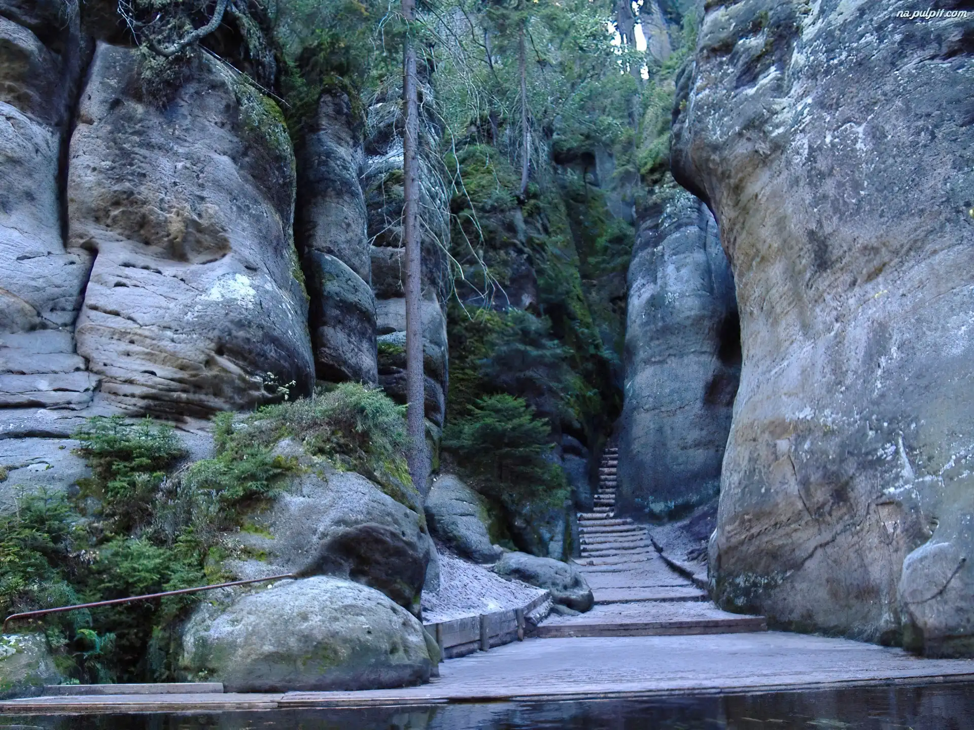 Czechy, Drzewa, Schodki, Skały, Adrspach Na Pulpit