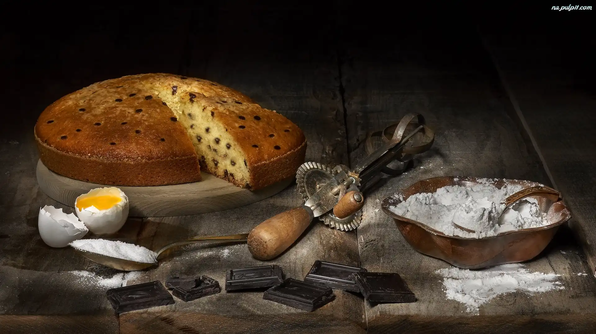 Łyżka, Babka, Mąka, Deski, Kompozycja, Jajka, Ciasto, Czekolada Na Pulpit