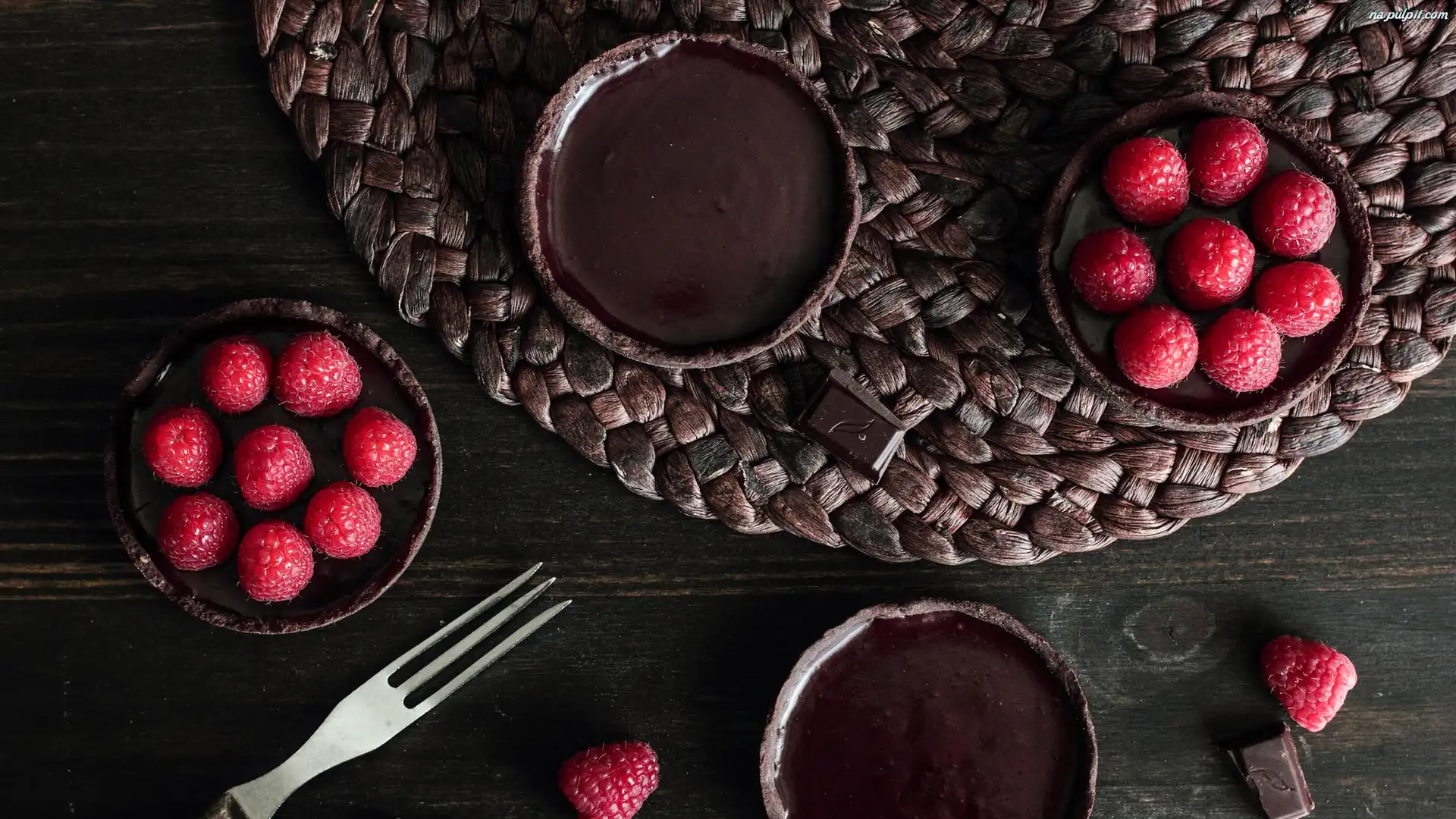 Podkładka, Czekolada, Mata, Widelec, Maliny, Deser, Deski