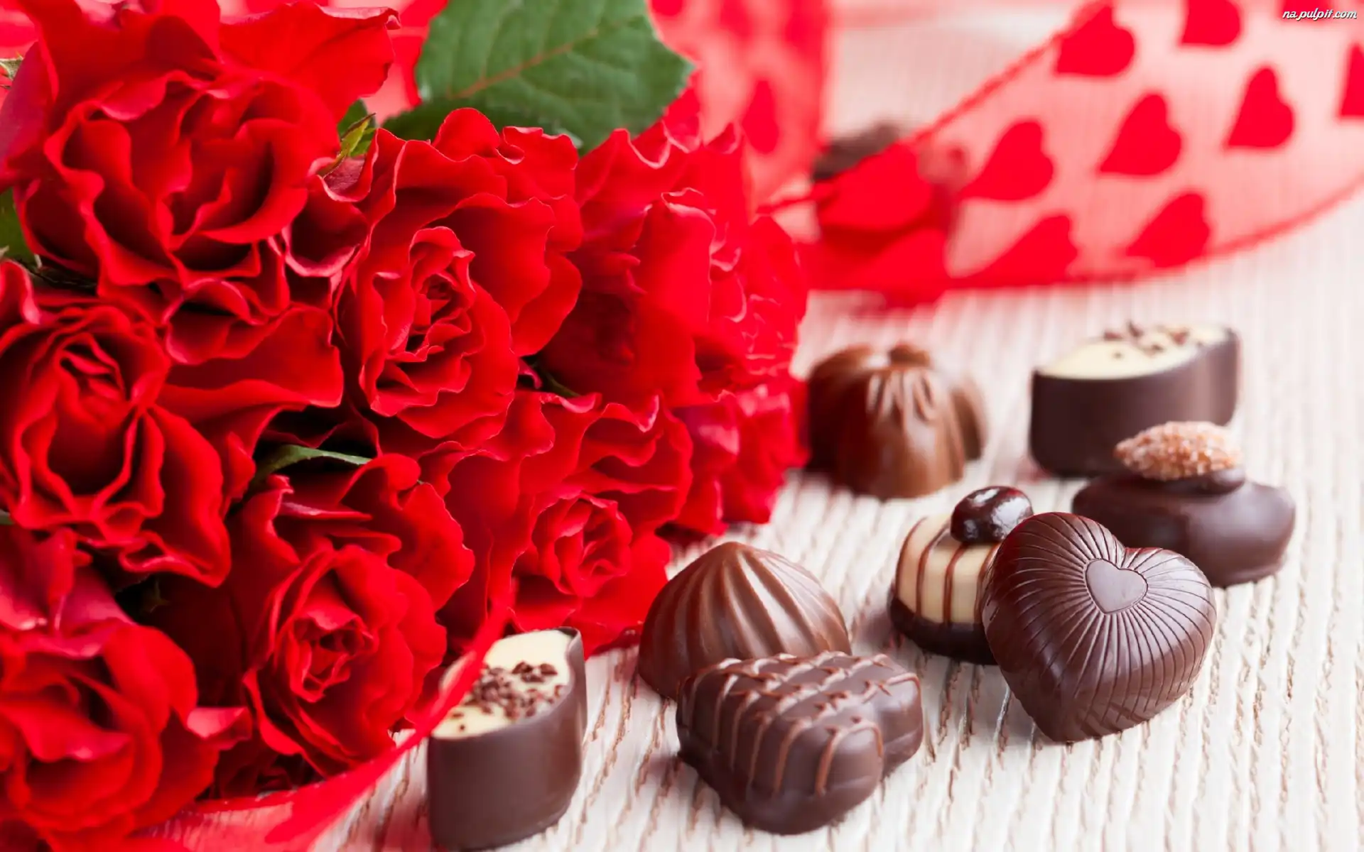 Czekoladki, Bukiet, Walentynki, Róż Na Pulpit