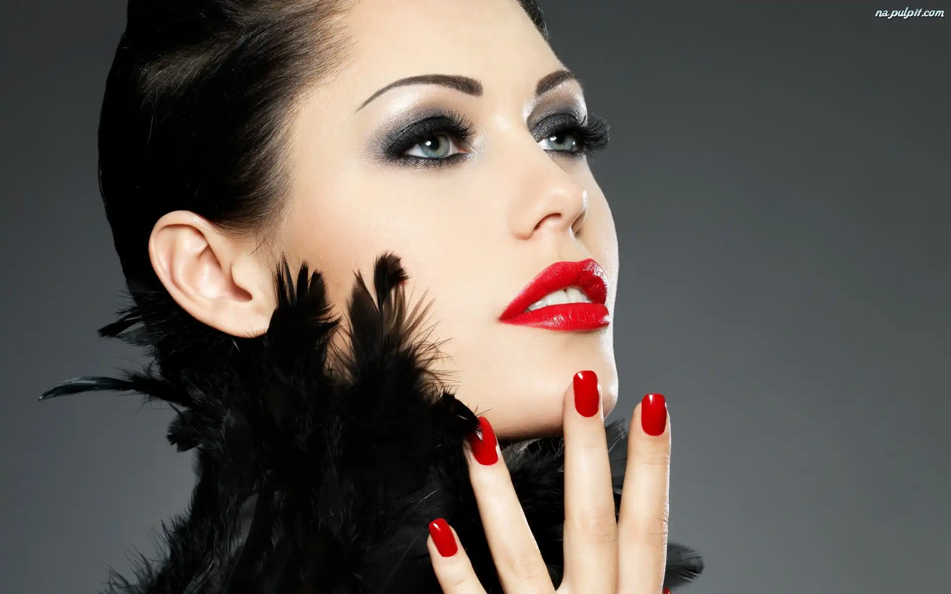 Czerwień, Makijaż, Brunetka, Piękna, Pióra Na Pulpit