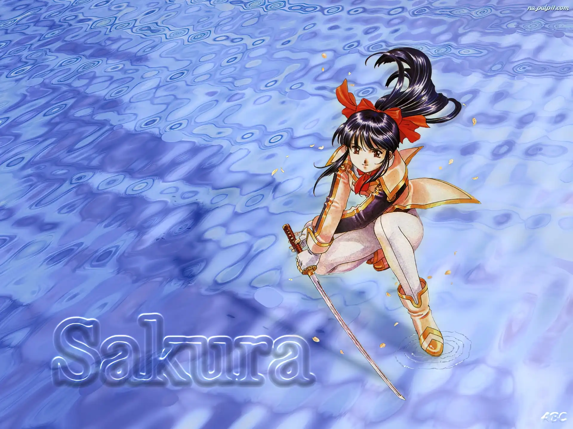 czerwona kokarda, Sakura Wars, czarne włosy Na Pulpit