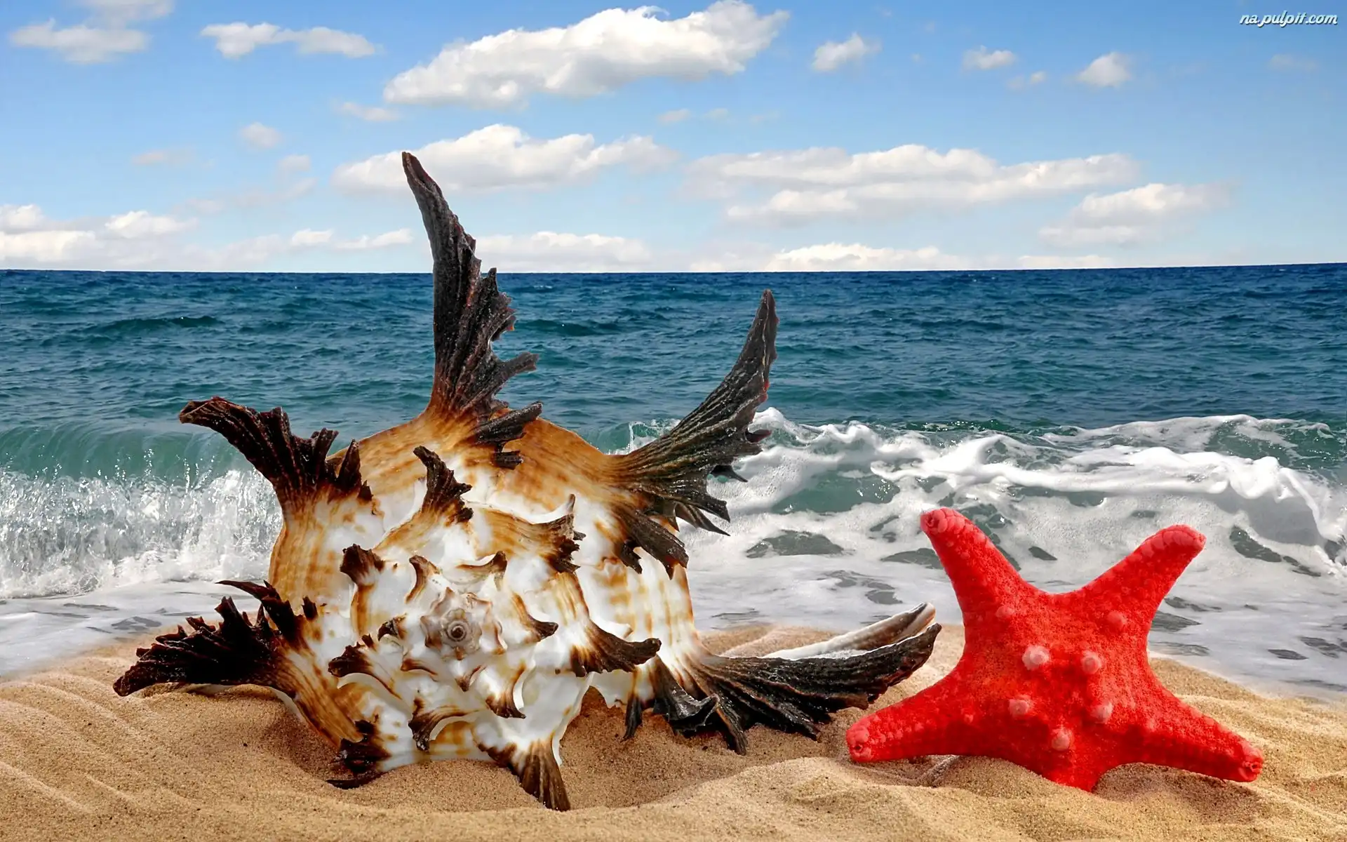 Czerwona Rozgwiazda, Plaża, Morze, Fantazyjna Muszla