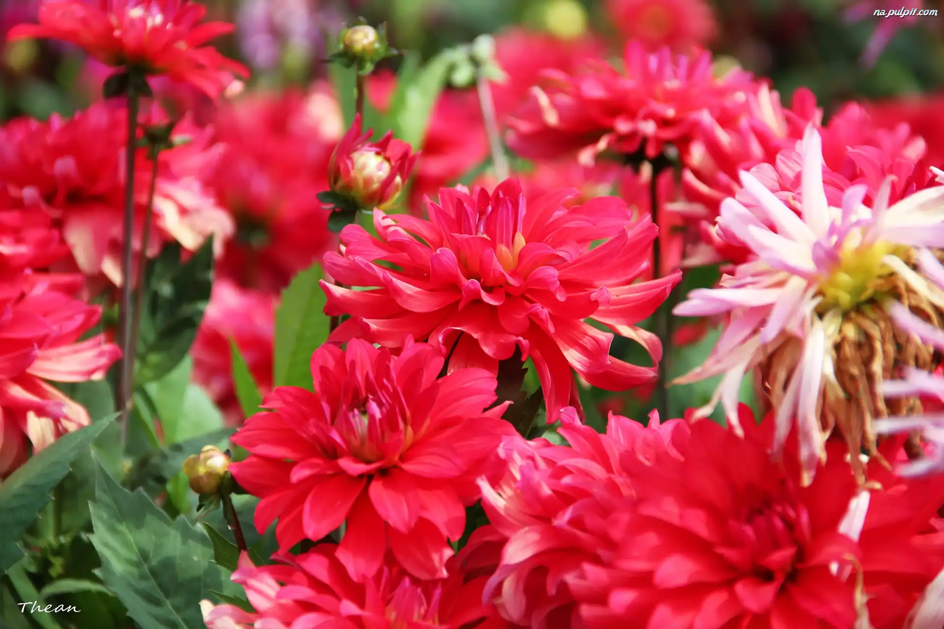 Dalie Fioletowa, Dalia Czerwony, Kwiat Bladoróżowa, Dalia Białe, Dalie Cultivars Kolorowe, Dalie Czerwone, Dalie Dalia Dalia, Żółto, Czerwona Płotek, Dalie, Kwiaty, Biały Łodygi, Dalie, Różowe Kwiaty, Fontanna, Woda Liście, Dalia, Kwiat, Pąk Czerwone, Dalie