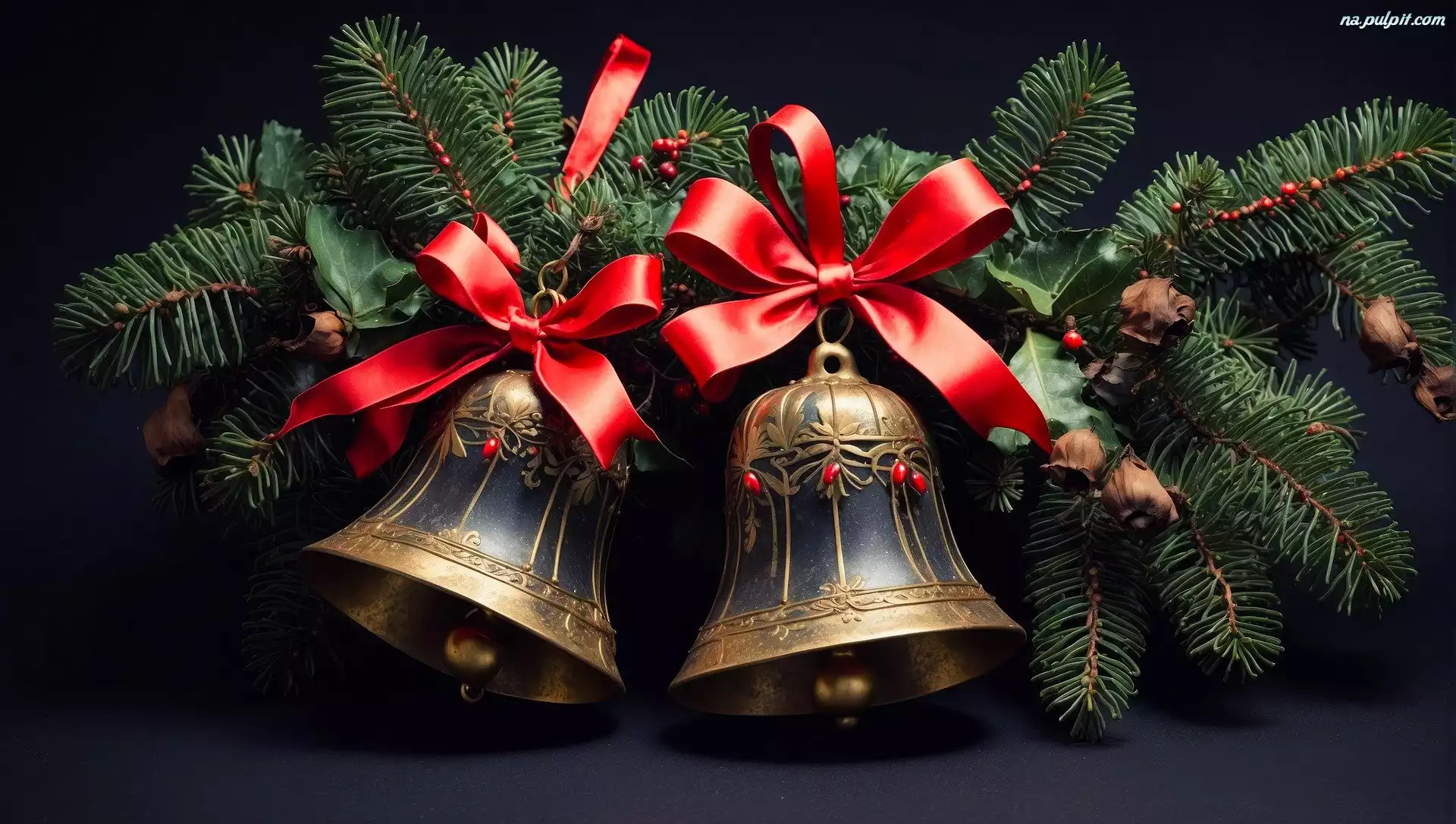 Kokardy, Dzwonki, Gałązki, Dwa, Dekoracja, Świerkowe, Ozdobne, Czerwone Na Pulpit