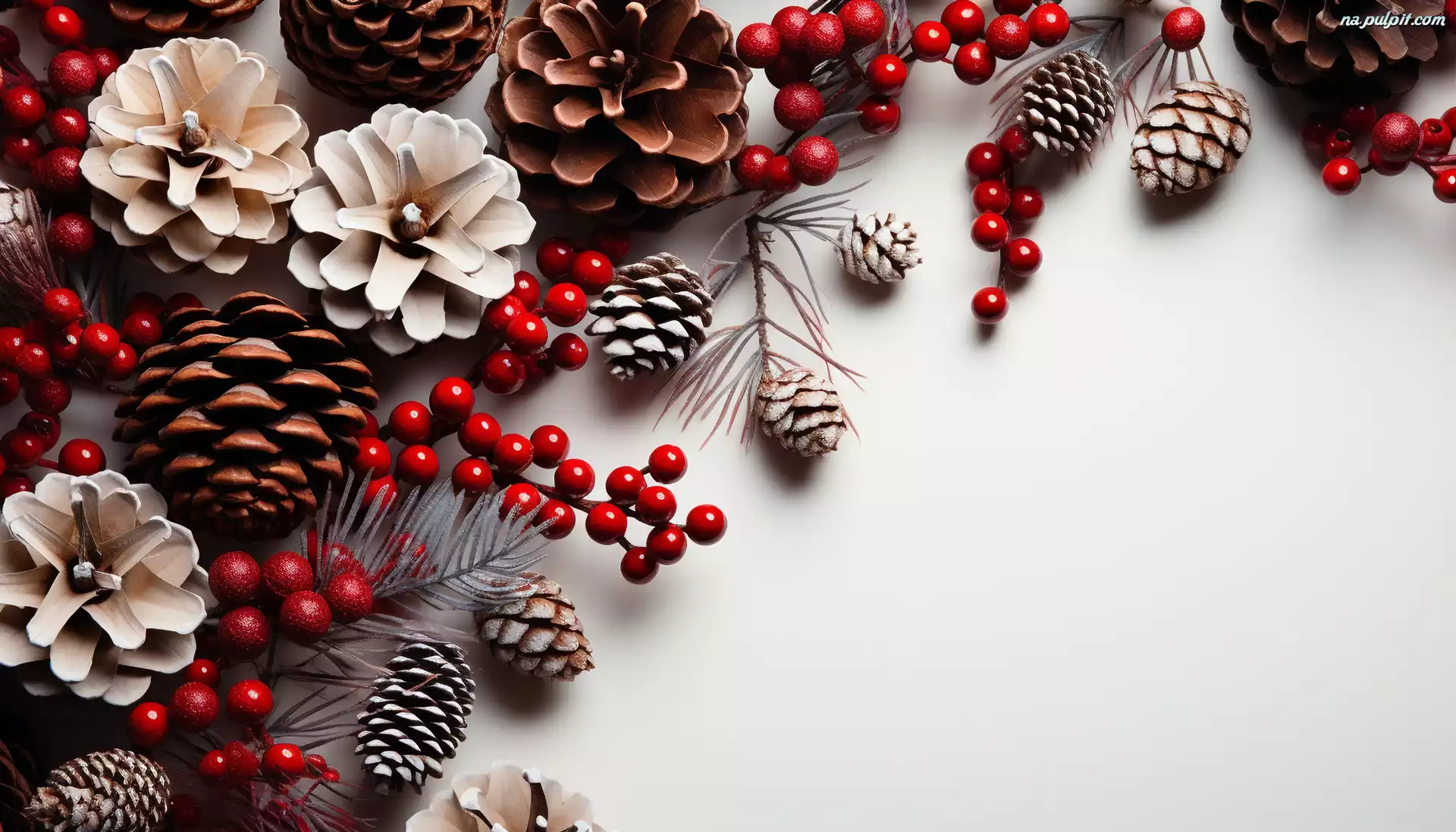 Owoce, Kompozycja, Gałęzie, Czerwone, Szyszki, Kompozycja Na Pulpit