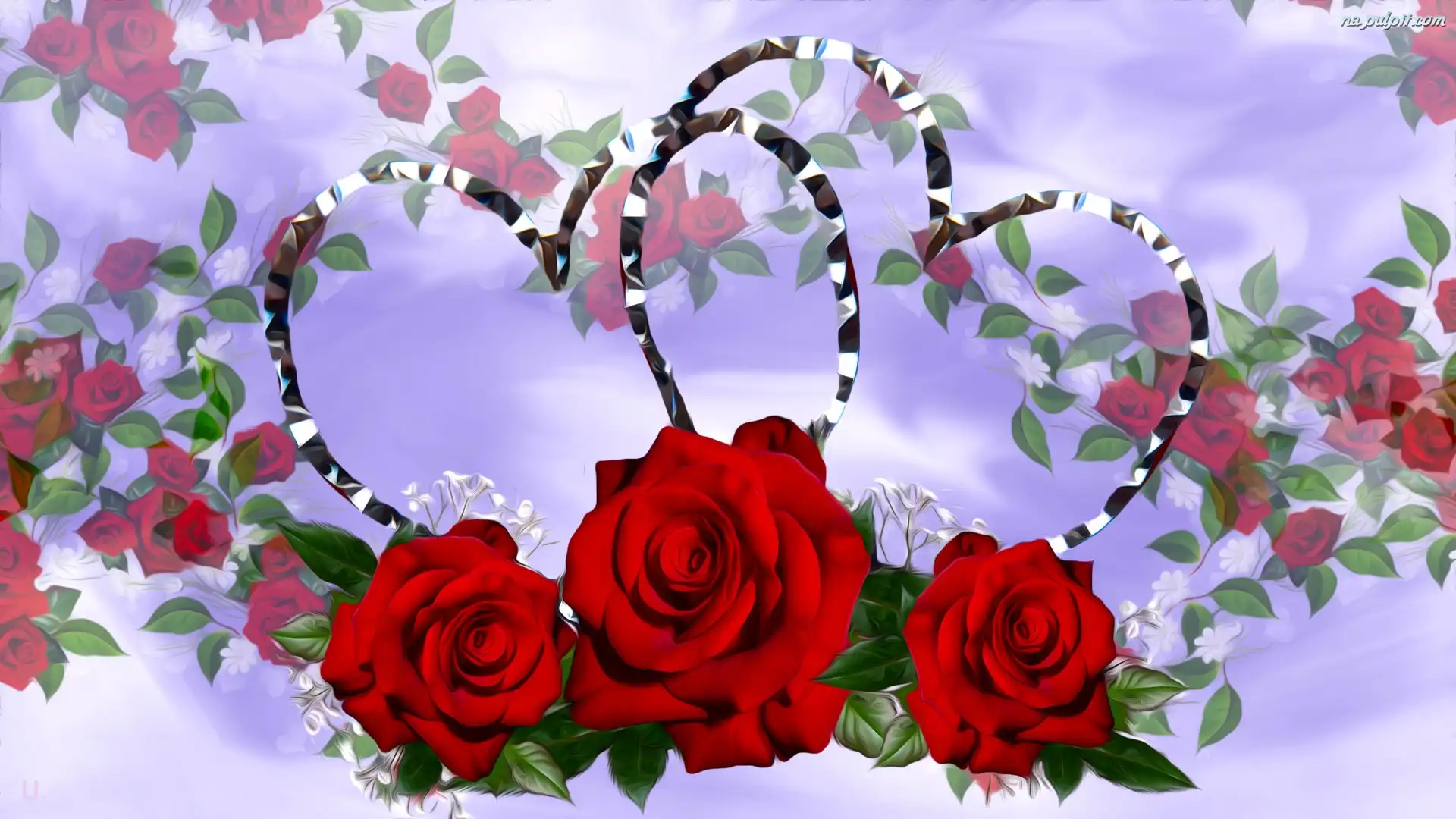 Czerwone, Serce, Kwiaty, Róże Na Pulpit