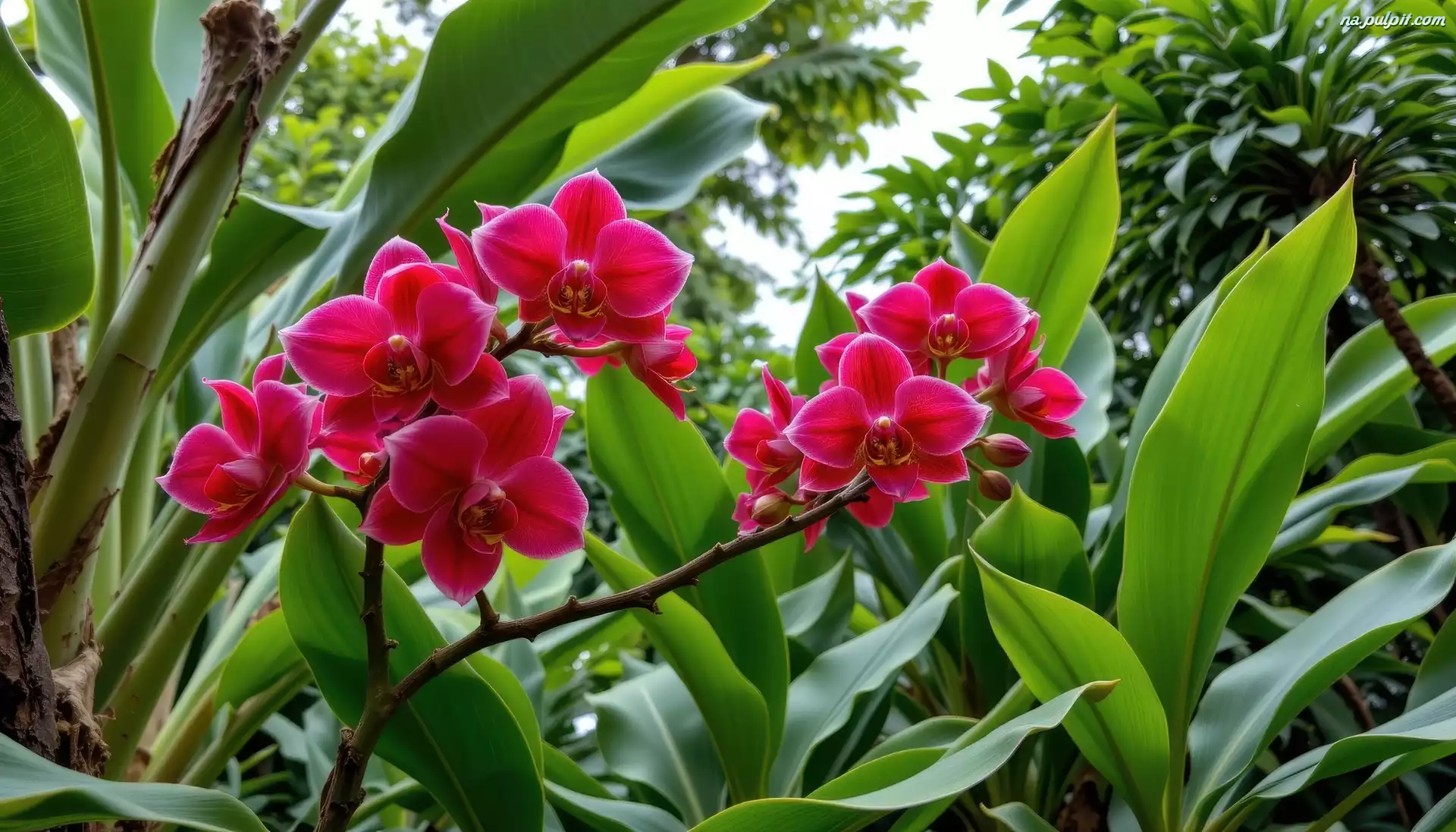 Liście, Czerwone, Kwiaty, AI, Storczyki Na Pulpit