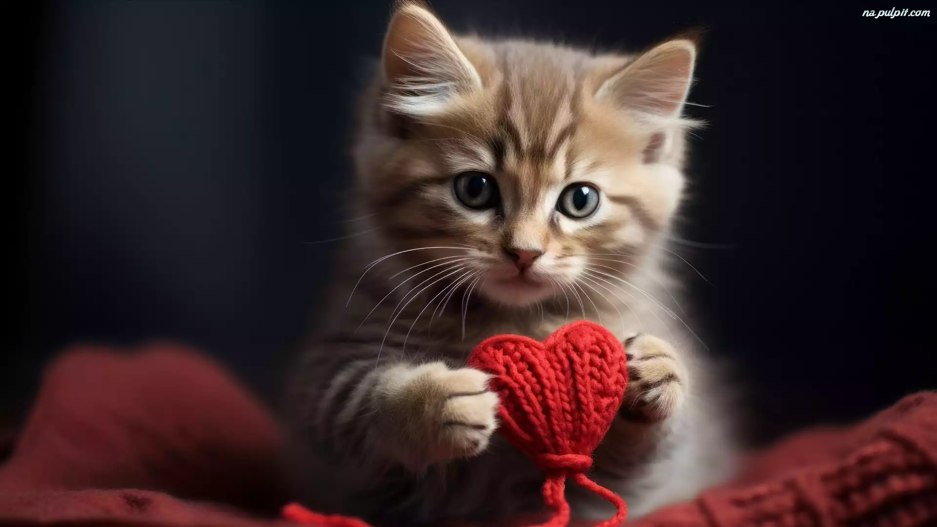 Dzianinowe, Mały, Serduszko, Czerwone, Kotek, Łapki Na Pulpit