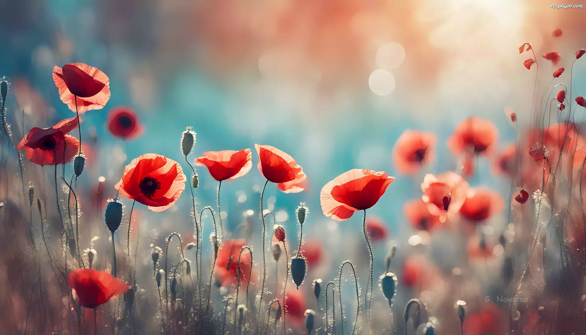 Pąki, Czerwone, Maki, Grafika, Kwiaty