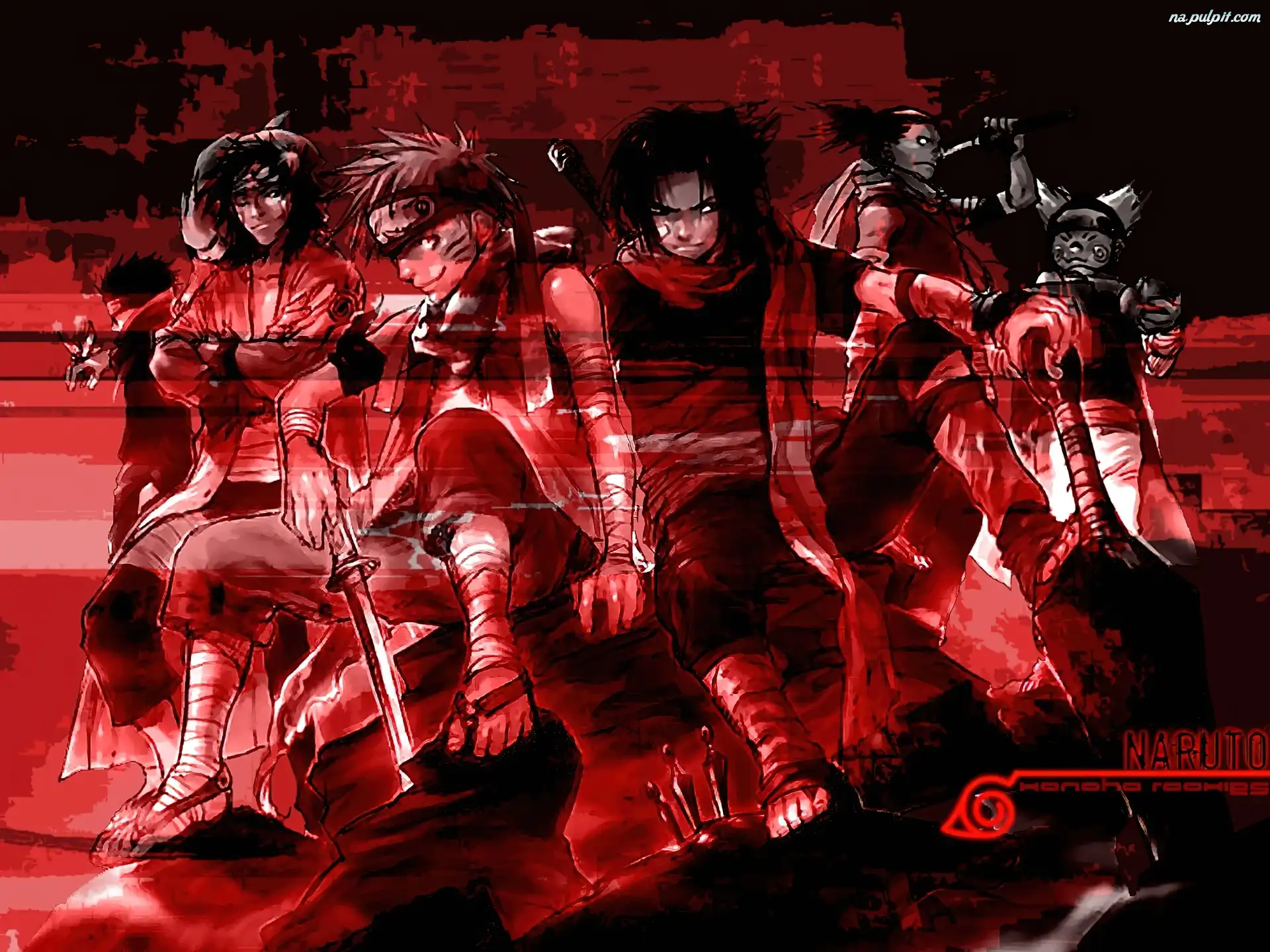 czerwone tło, Naruto, postacie