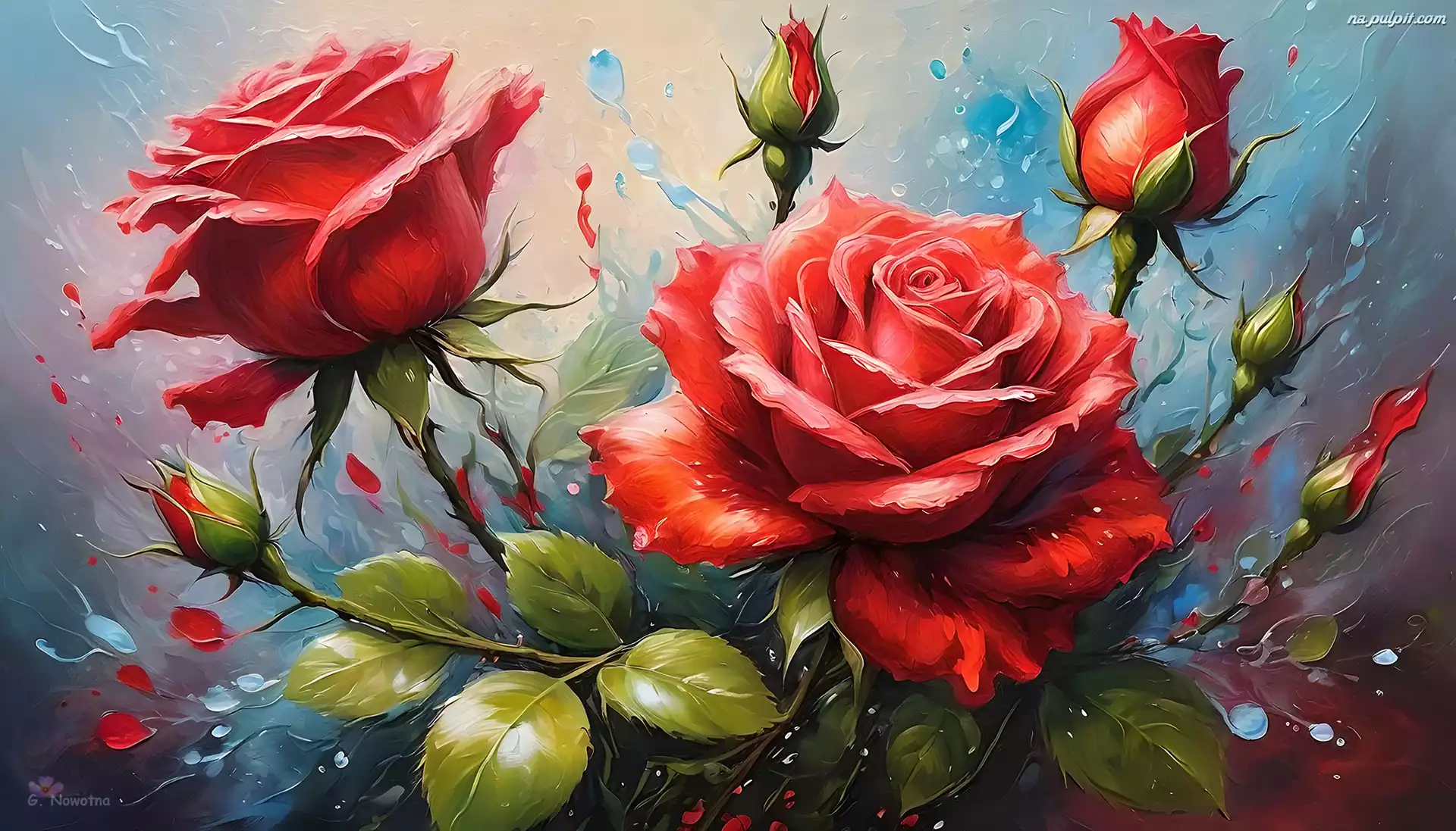 Kwiaty, Czerwone, Róże, Grafika, Pąki Na Pulpit