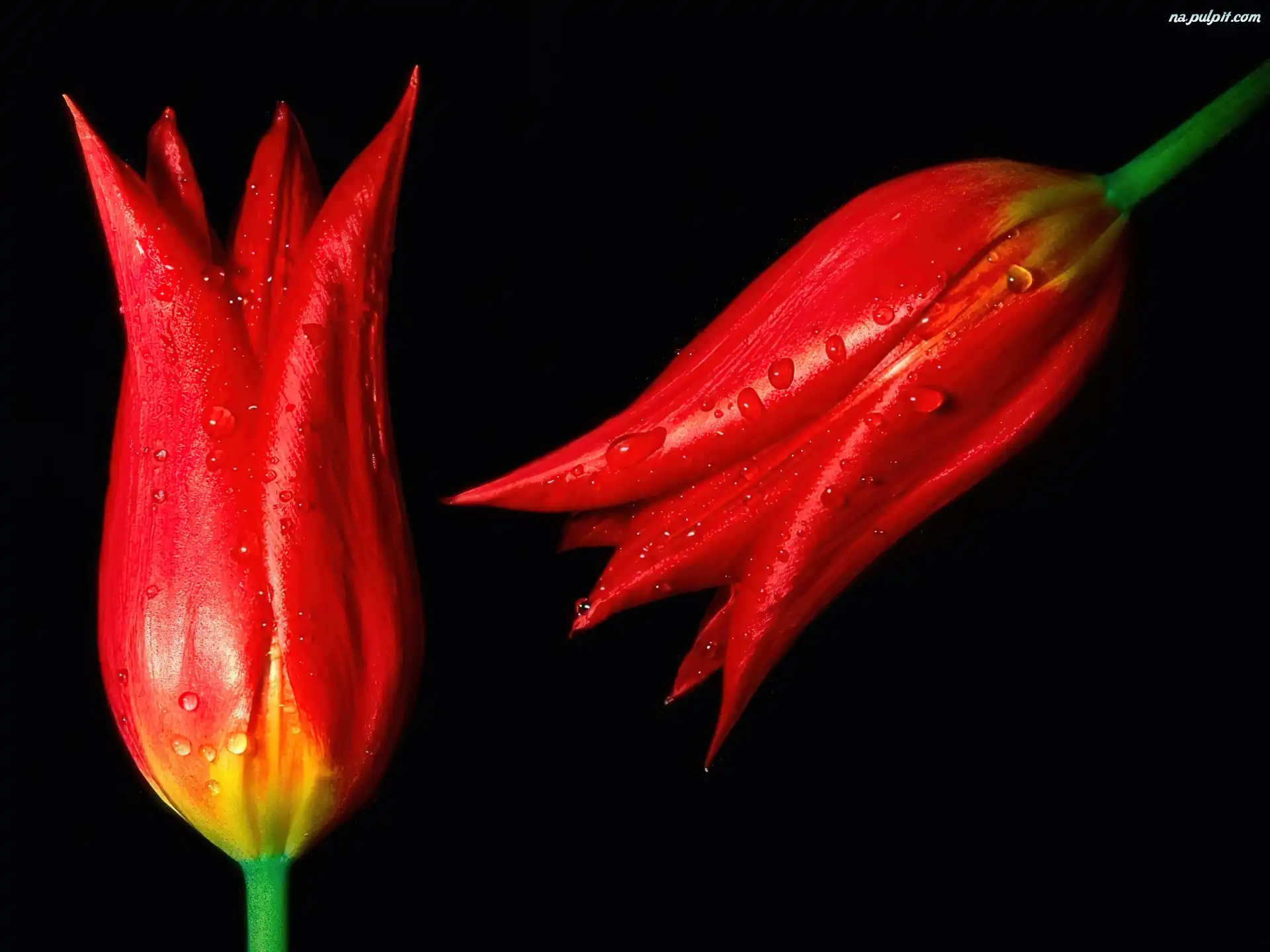Wody, Tulipany, Czerwone, Krople Na Pulpit