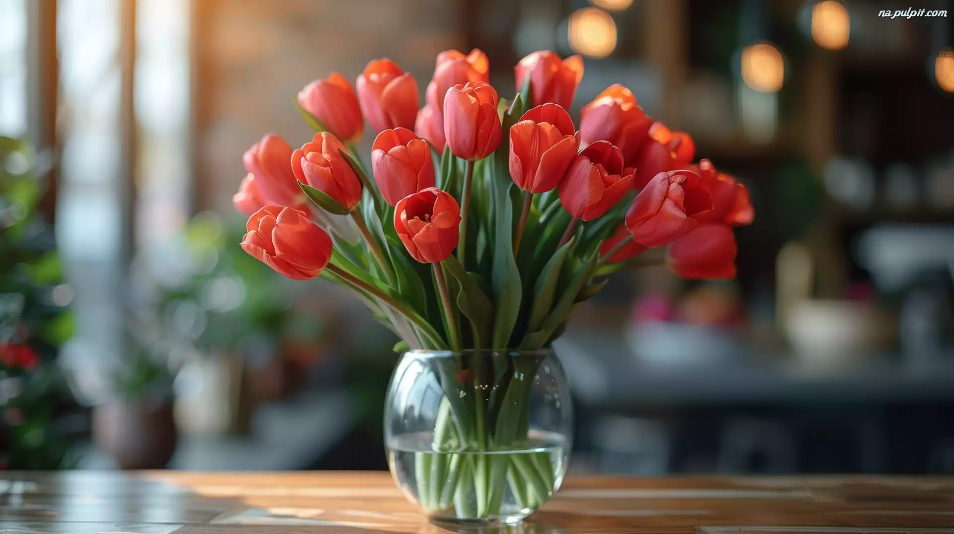 Wazon Kwiat, Bukiet, Czerwone, Tulipan, Tulipany Na Pulpit