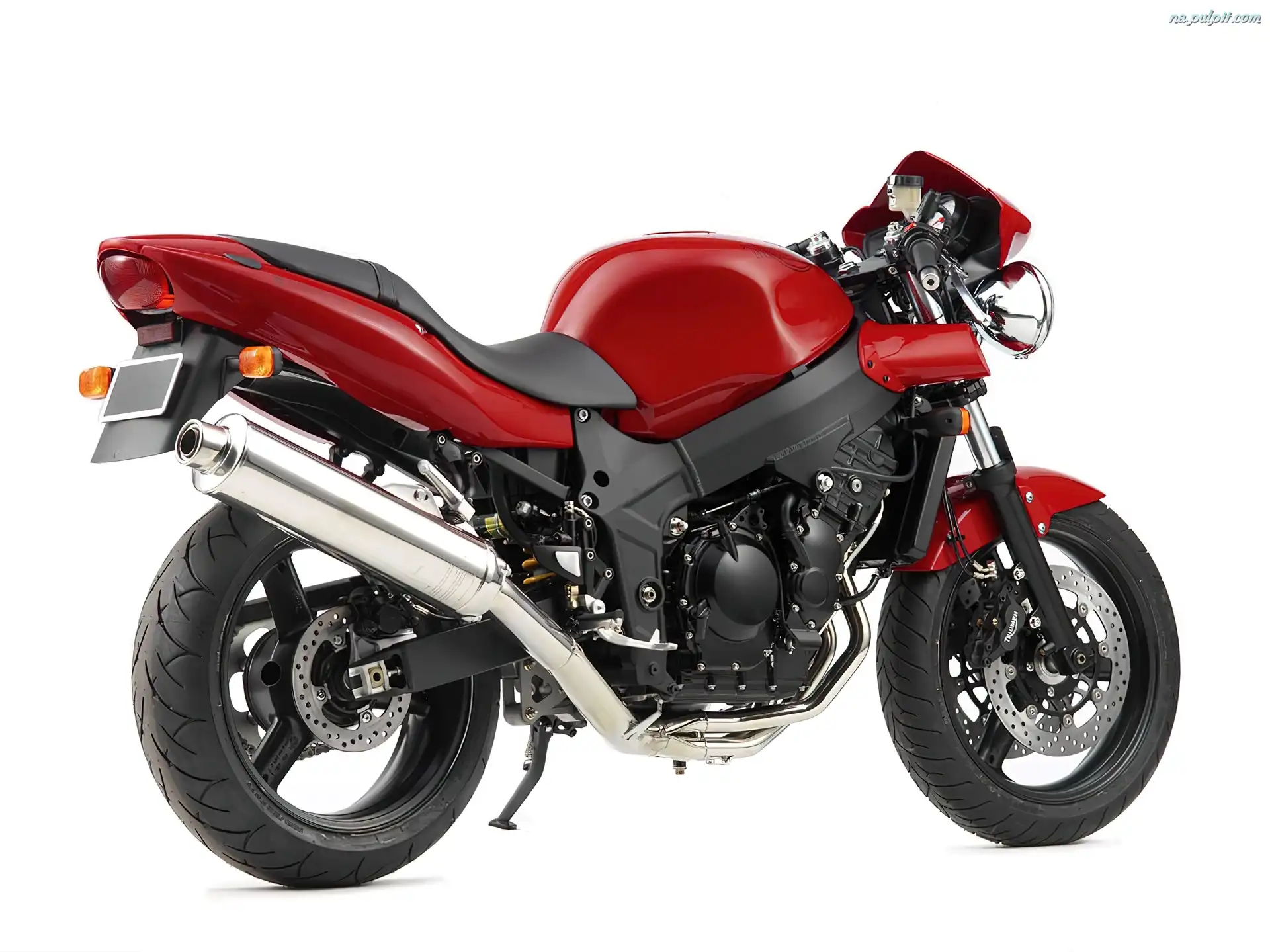 Sportowe, lusterka, czerwony, Ścigacze, kierownica, koła, opony , światła , tłumik , Triumph, siedzenie Na Pulpit |
