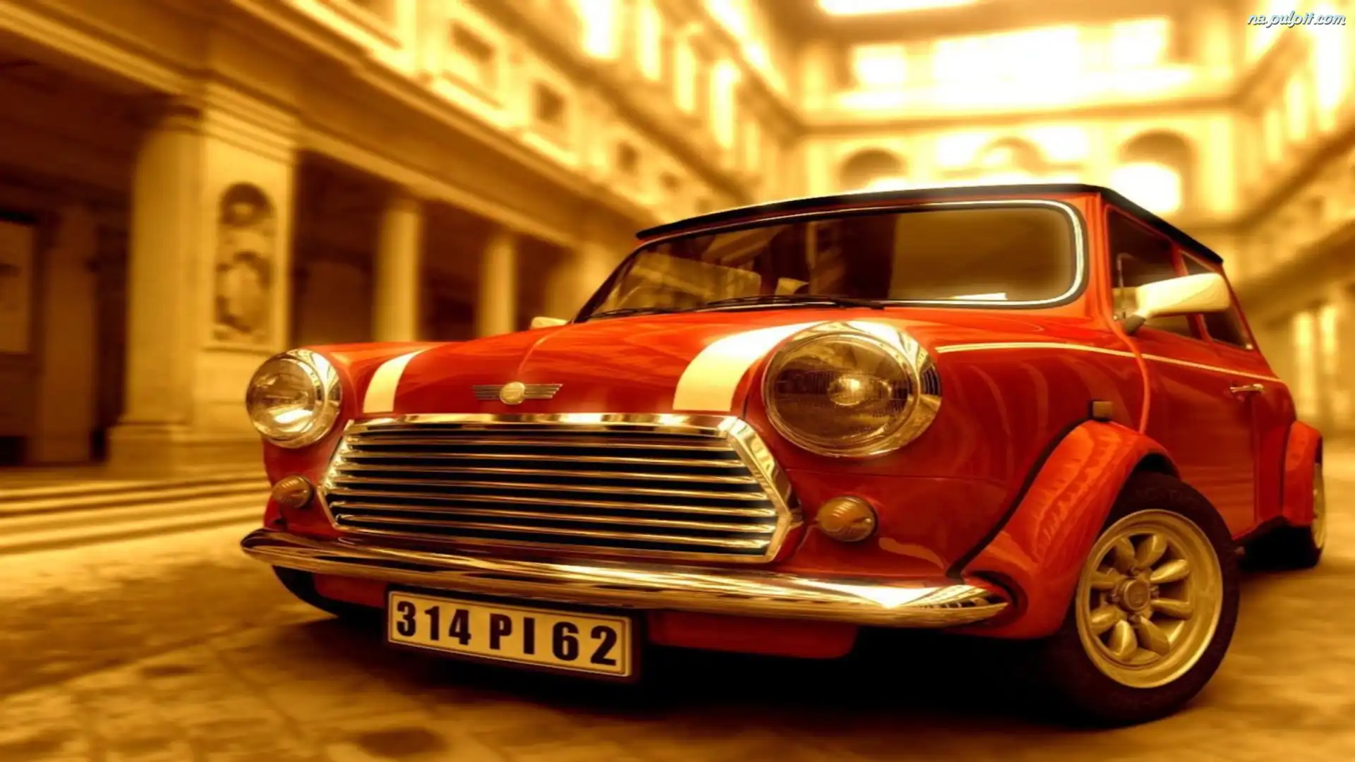 złoty, Mini Mini jeden Mini Mini Mini, Czerwony, Samochód Stary Mini brytyjski Mini Mini, GB Mini Morris Mini Morris, Halogeny Rajdowy, Mini Morris Mini Morris Cabrio