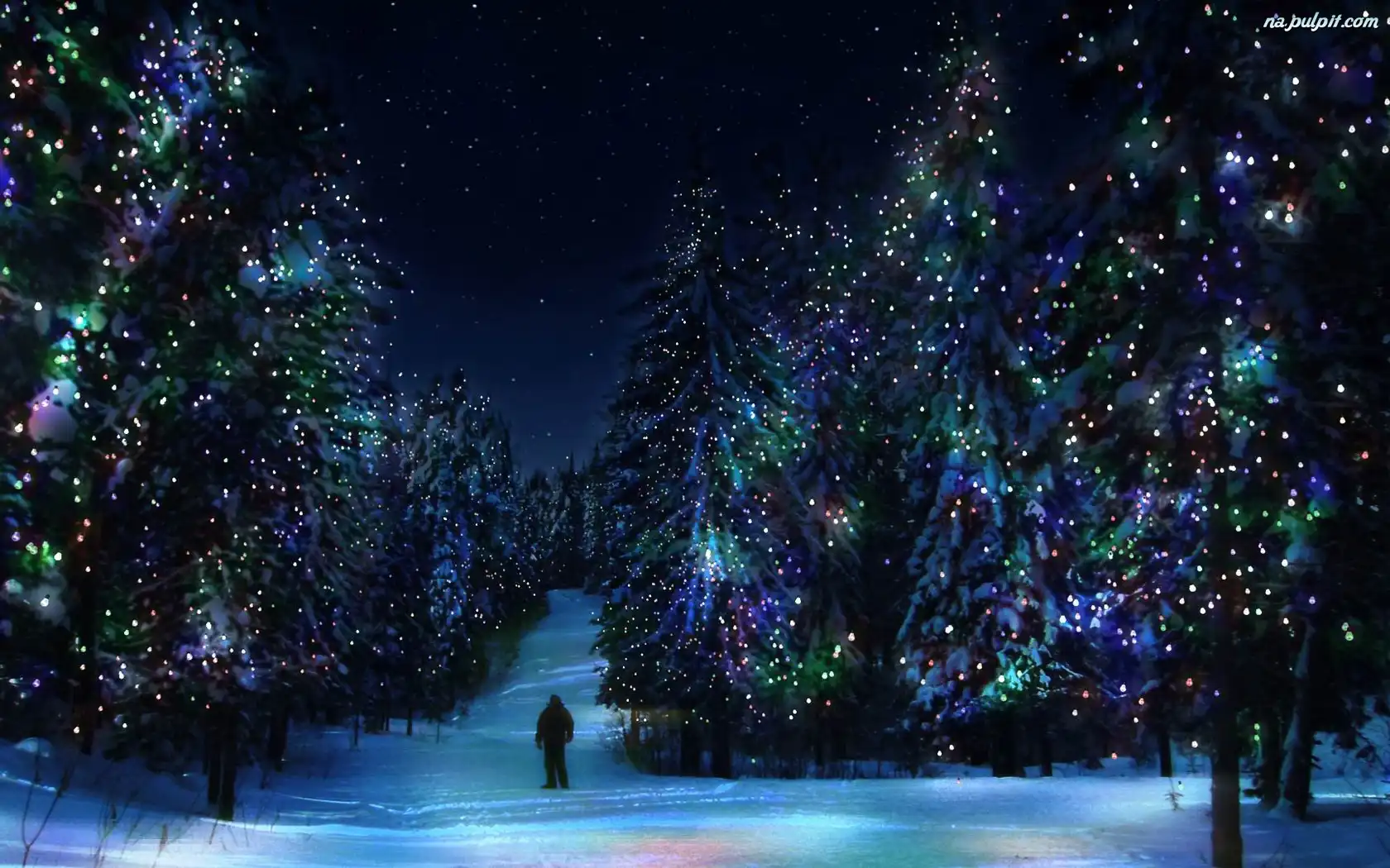 Drzewa, Człowiek, Oświetlone Na Pulpit