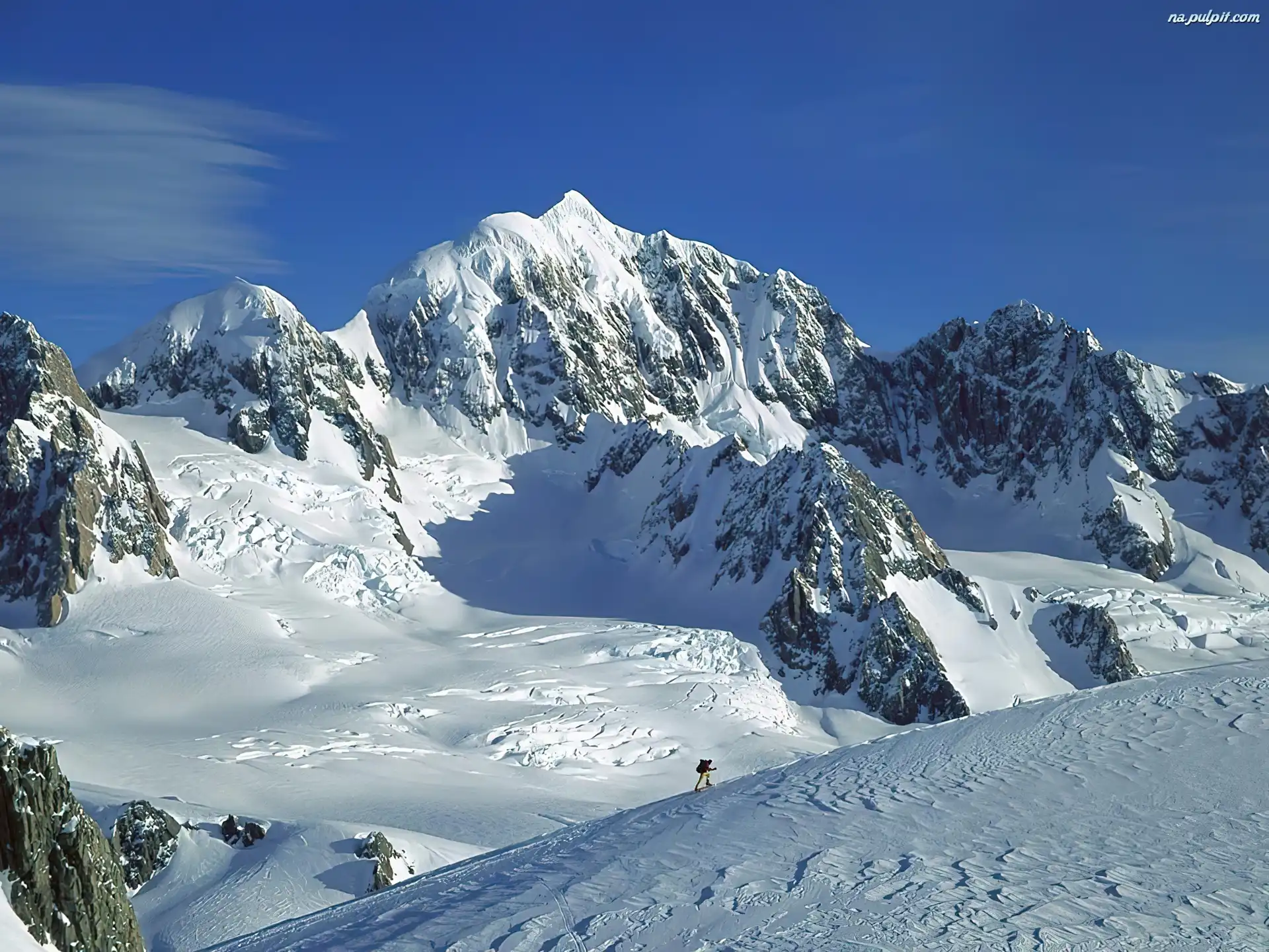 Człowiek, Pokryte, Góry, Śniegiem Na Pulpit