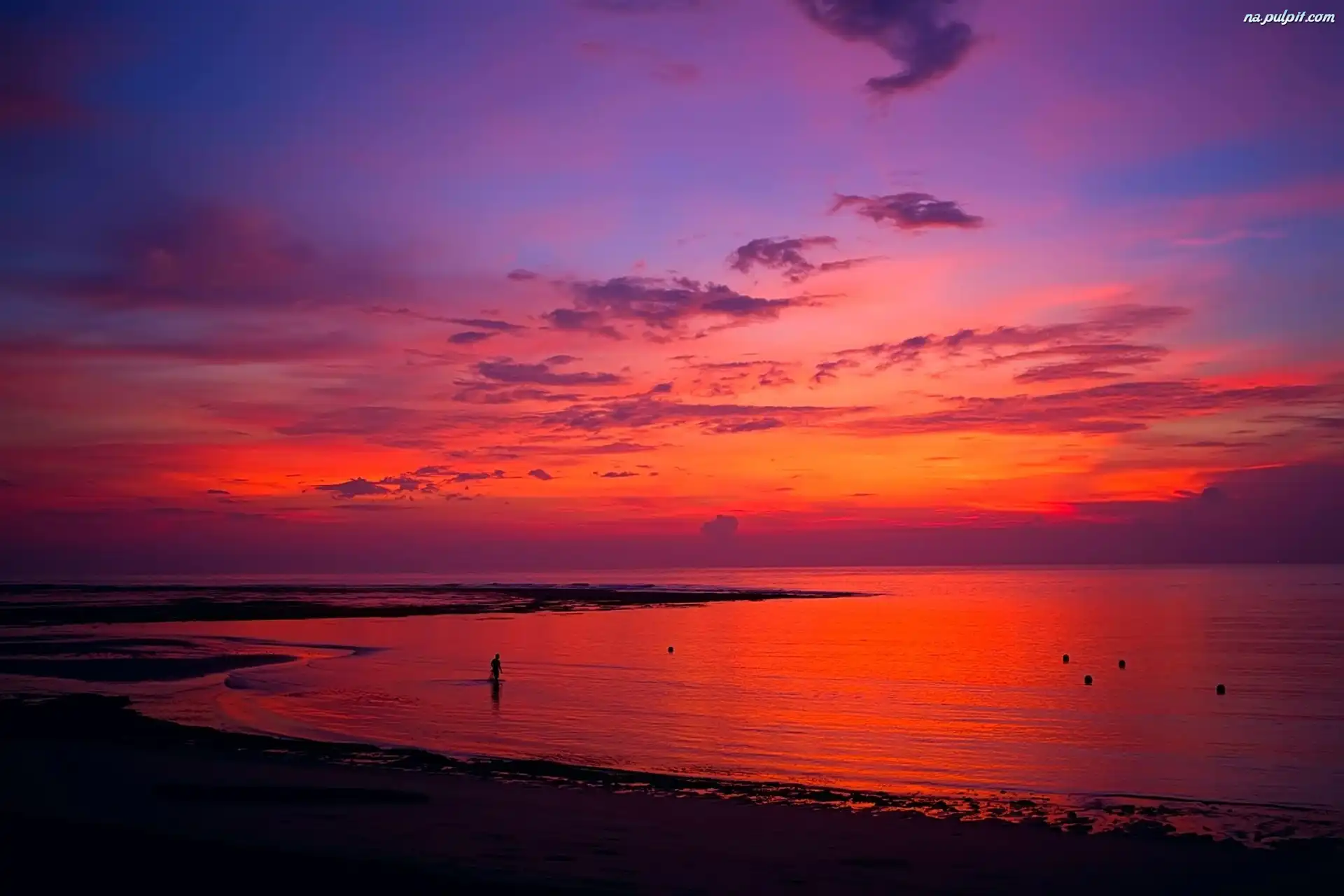 Człowiek, Czerwień, Słońca, Zachód, Jezioro Na Pulpit