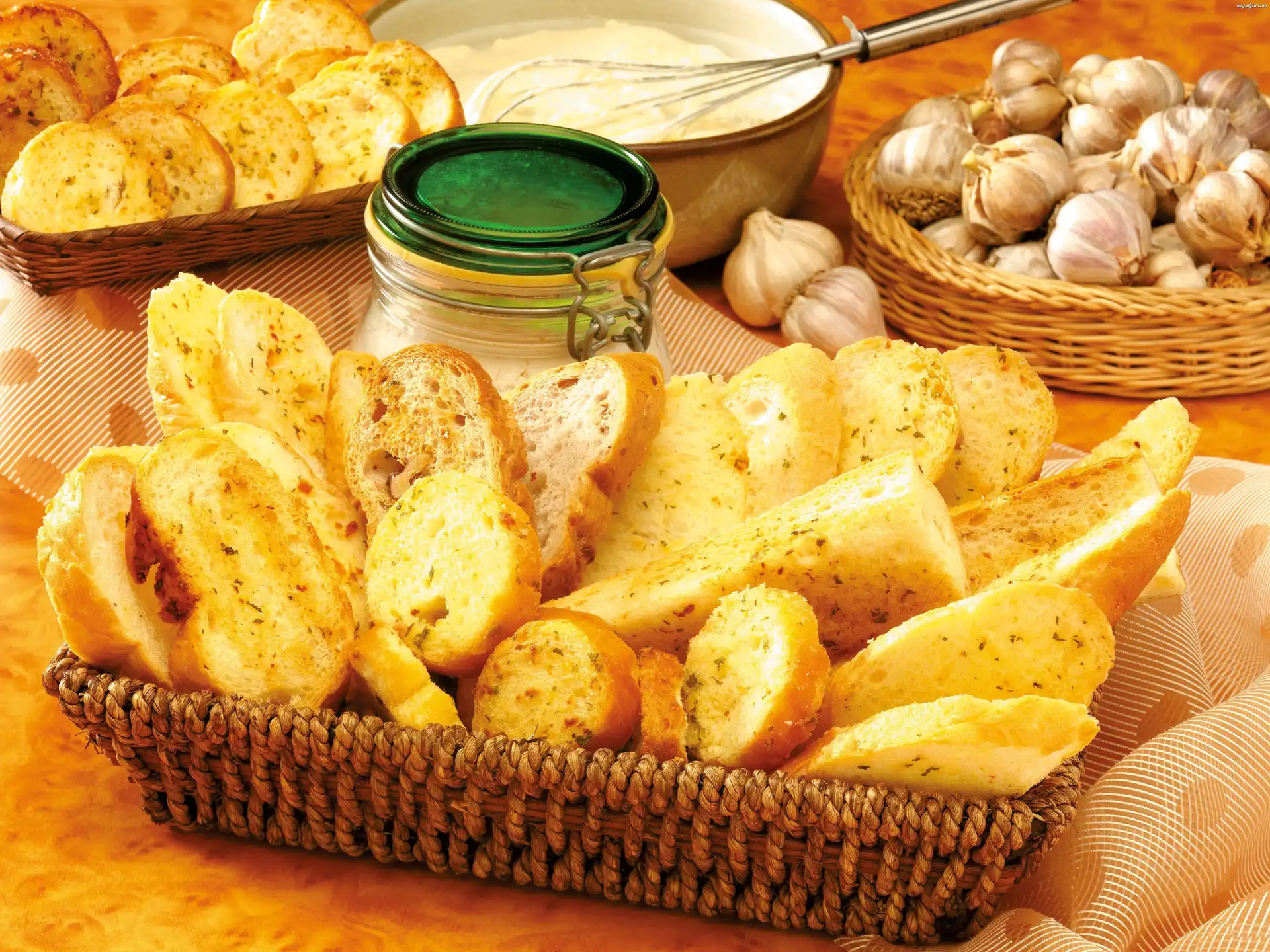 Czosnek, Tosty, Bagietka, Pokrojona, Czosnkowe