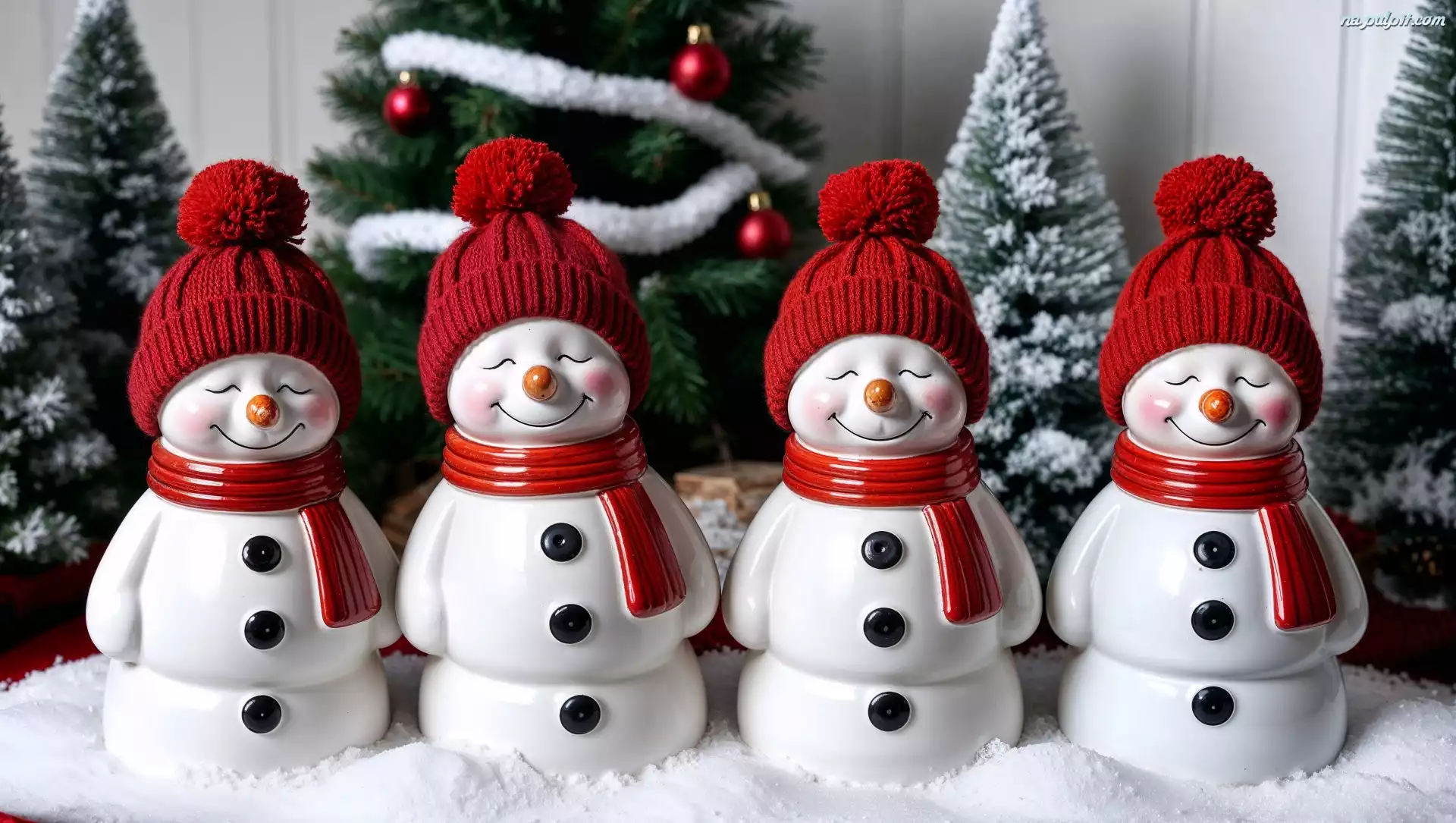 Święta, Cztery, Bałwany, Grafika, Choinki Na Pulpit