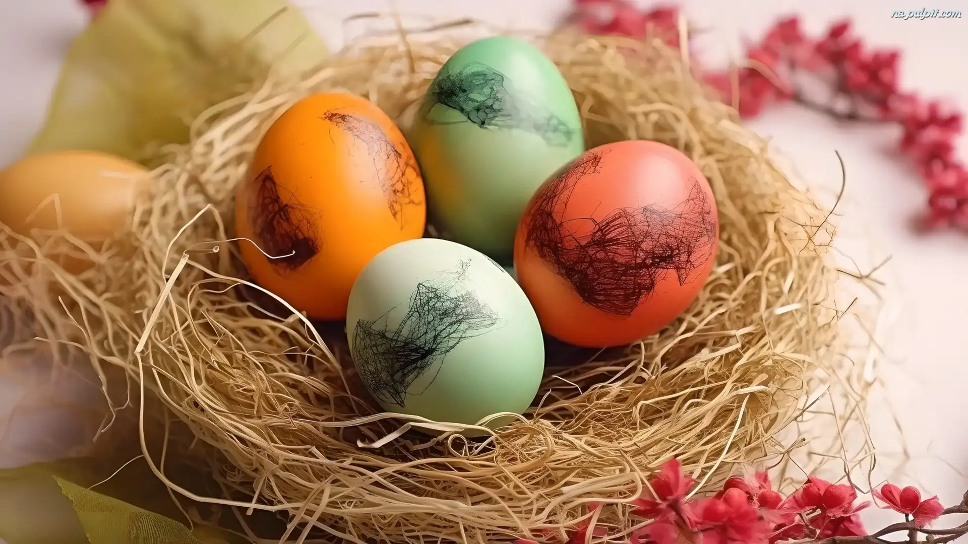 Gniazdko, Cztery, Kolorowe, Wielkanoc, Pisanki Na Pulpit
