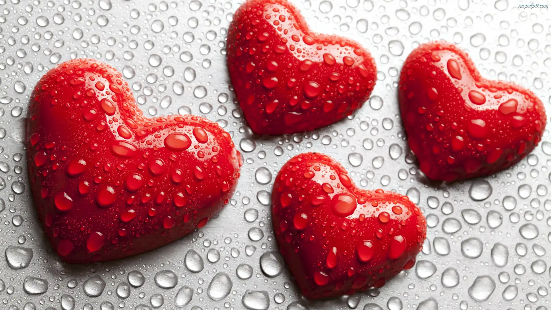 Cztery, Miłość, Krople, Serca, Walentynki, Czerwone
