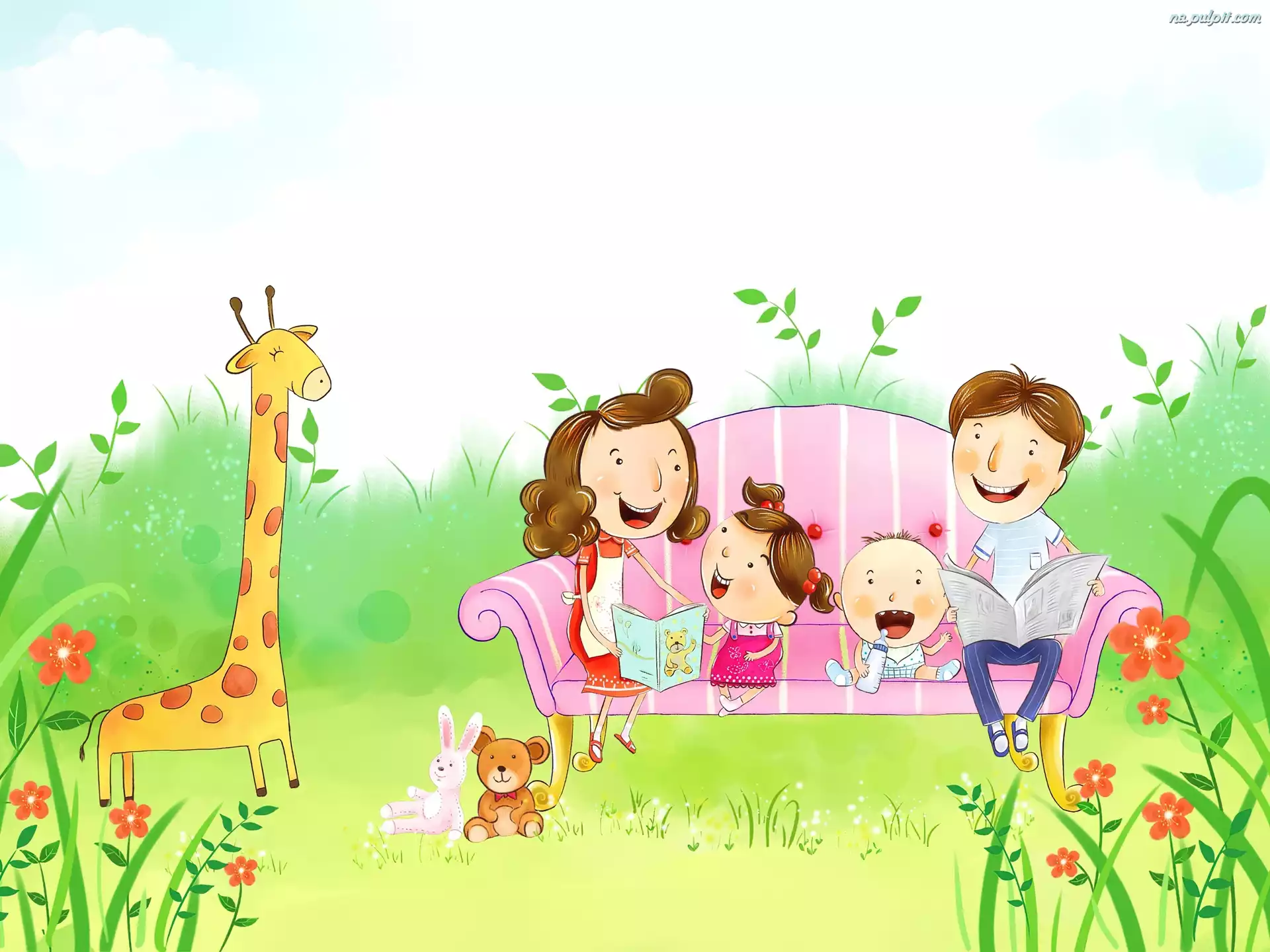 Czytanie, Kanapa, Rodzinka, Wspólne Na Pulpit