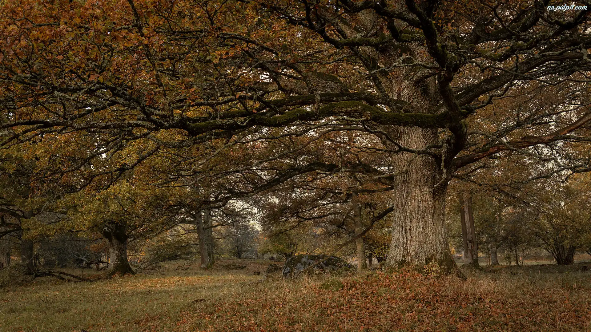 Brązowe, Las, Stary, Dąb, Drzewa, Liście Na Pulpit