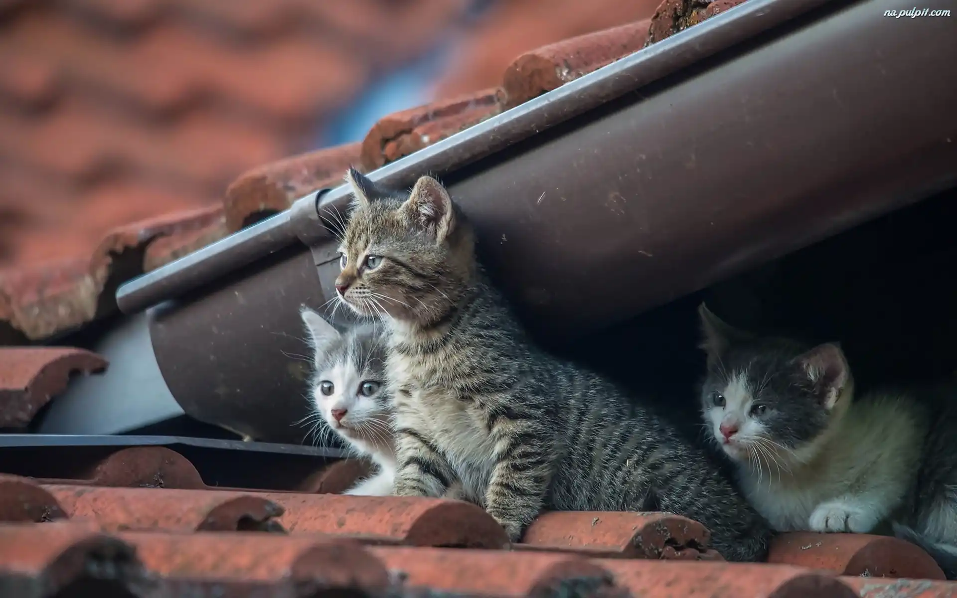 Dach, Małe, Słodkie, Trzy, Kotki Na Pulpit