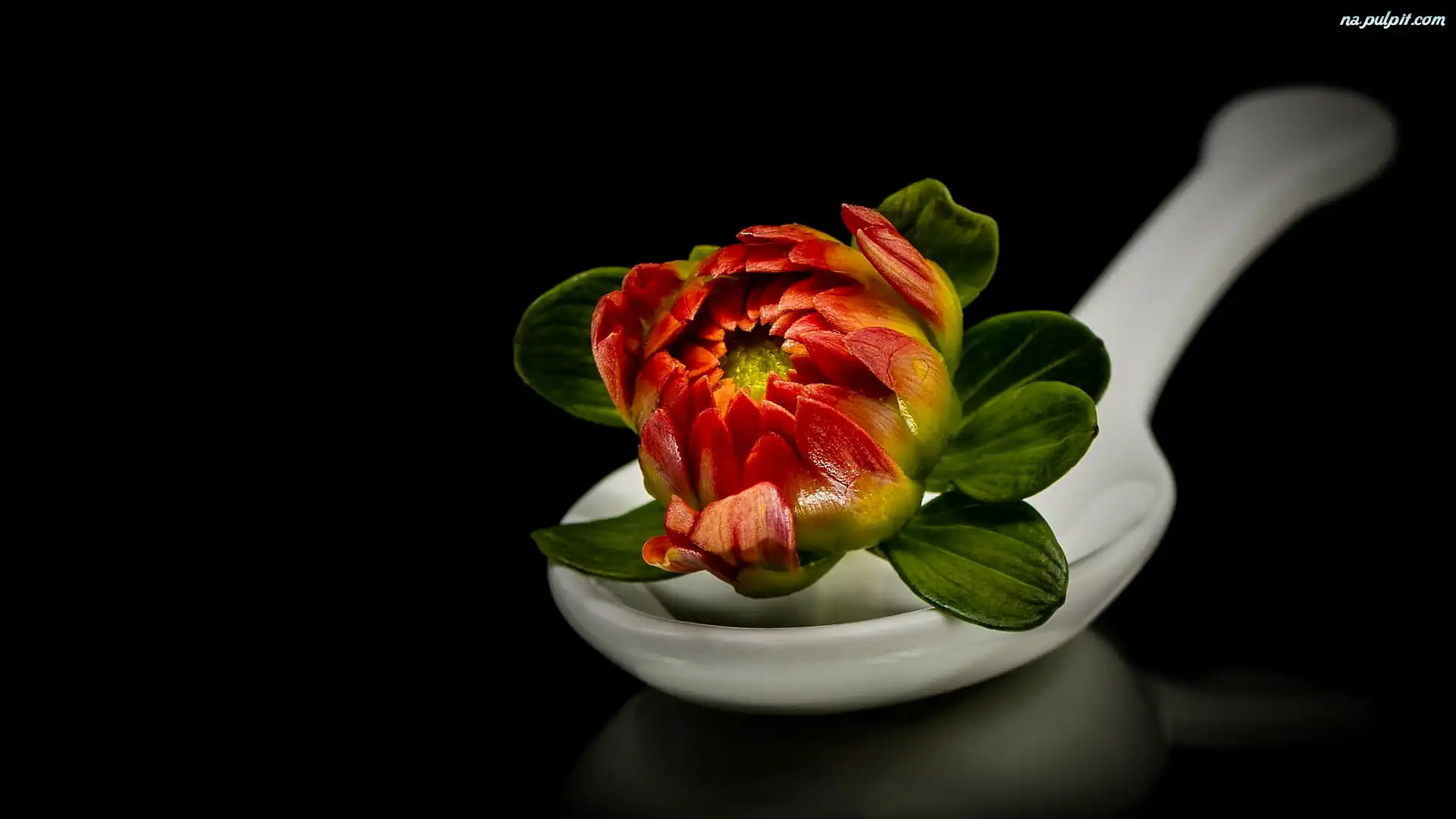 Tło, Dalia, Czarne, Łyżka, Pąk, Kwiat, Odbicie