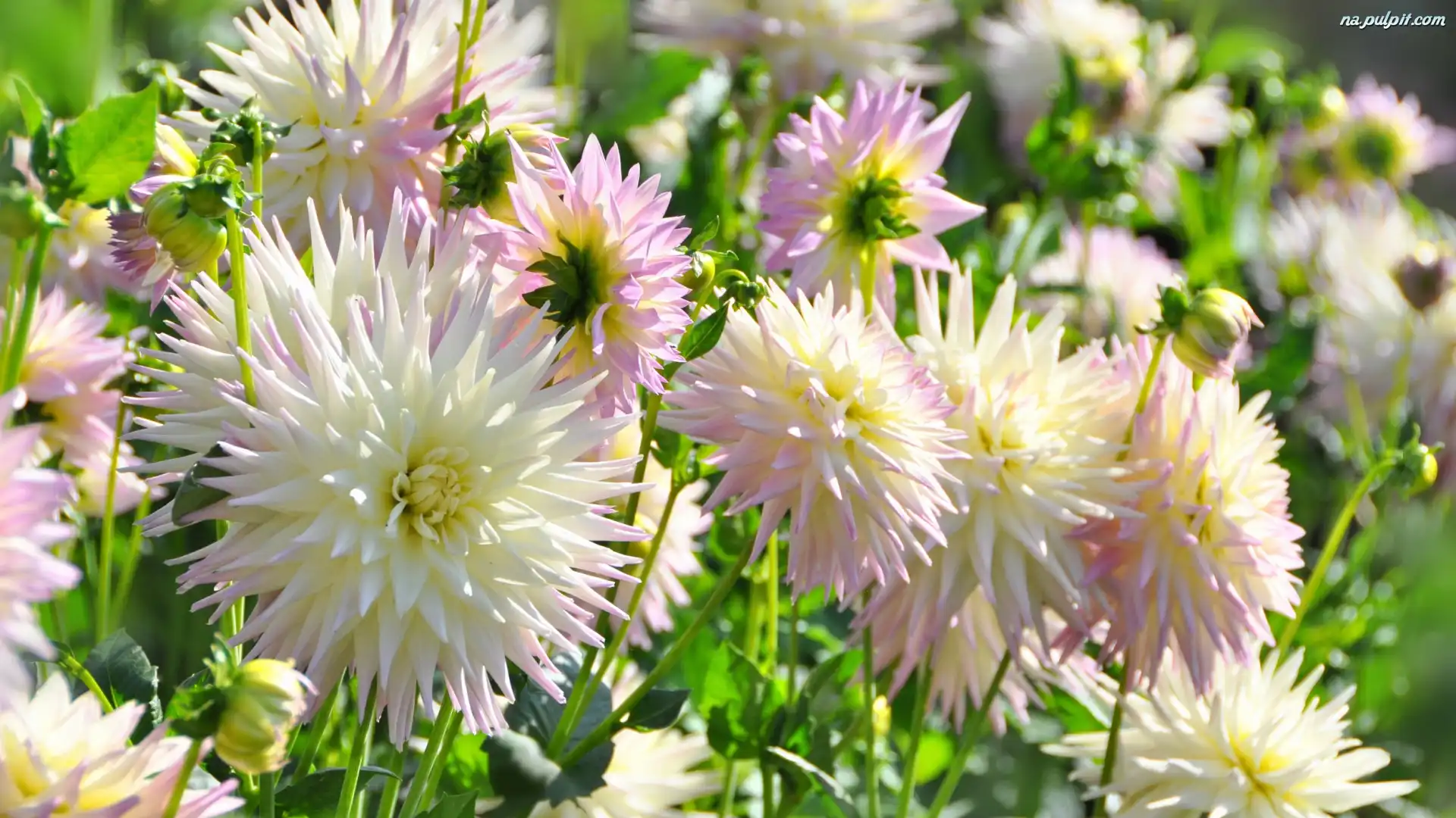 Dalie, Kwiaty, Biało-różowe Na Pulpit