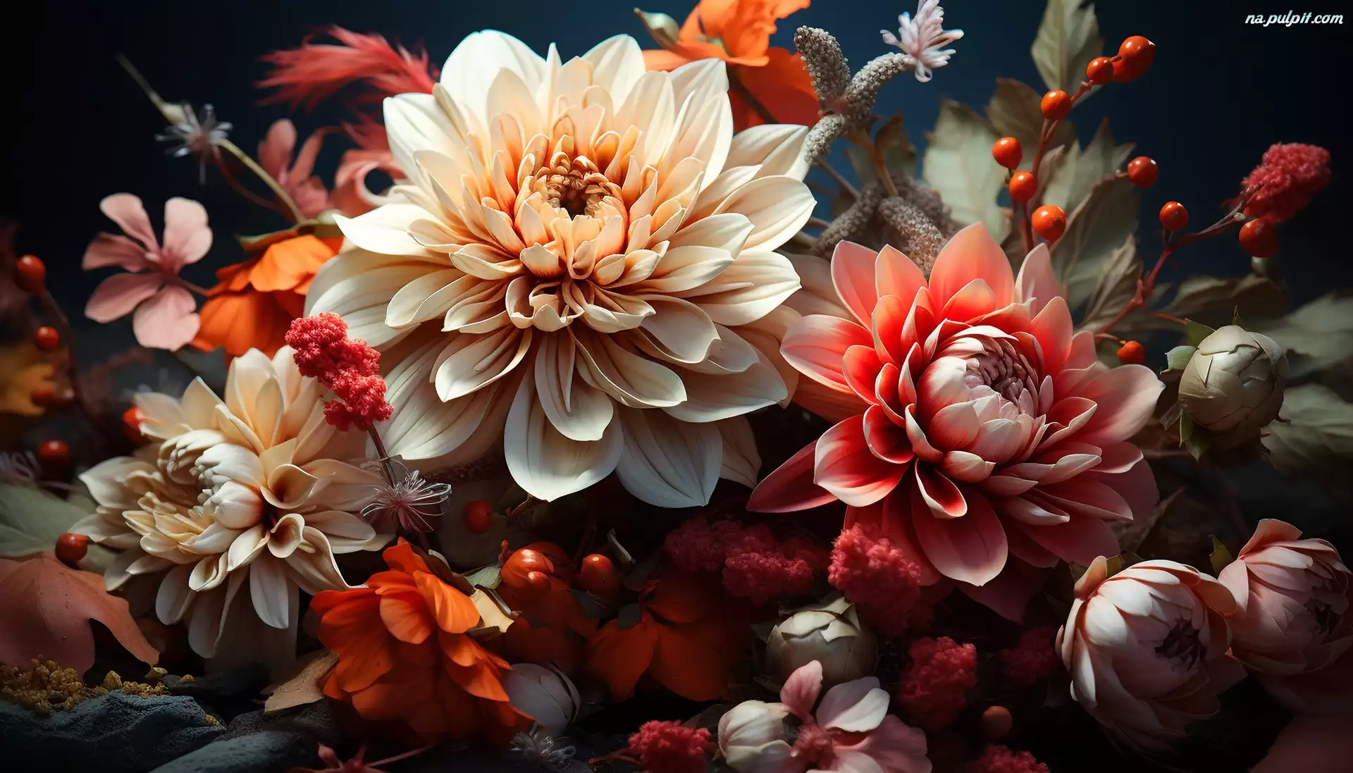 Kwiaty, Dalie, Ciemne tło, Grafika Na Pulpit