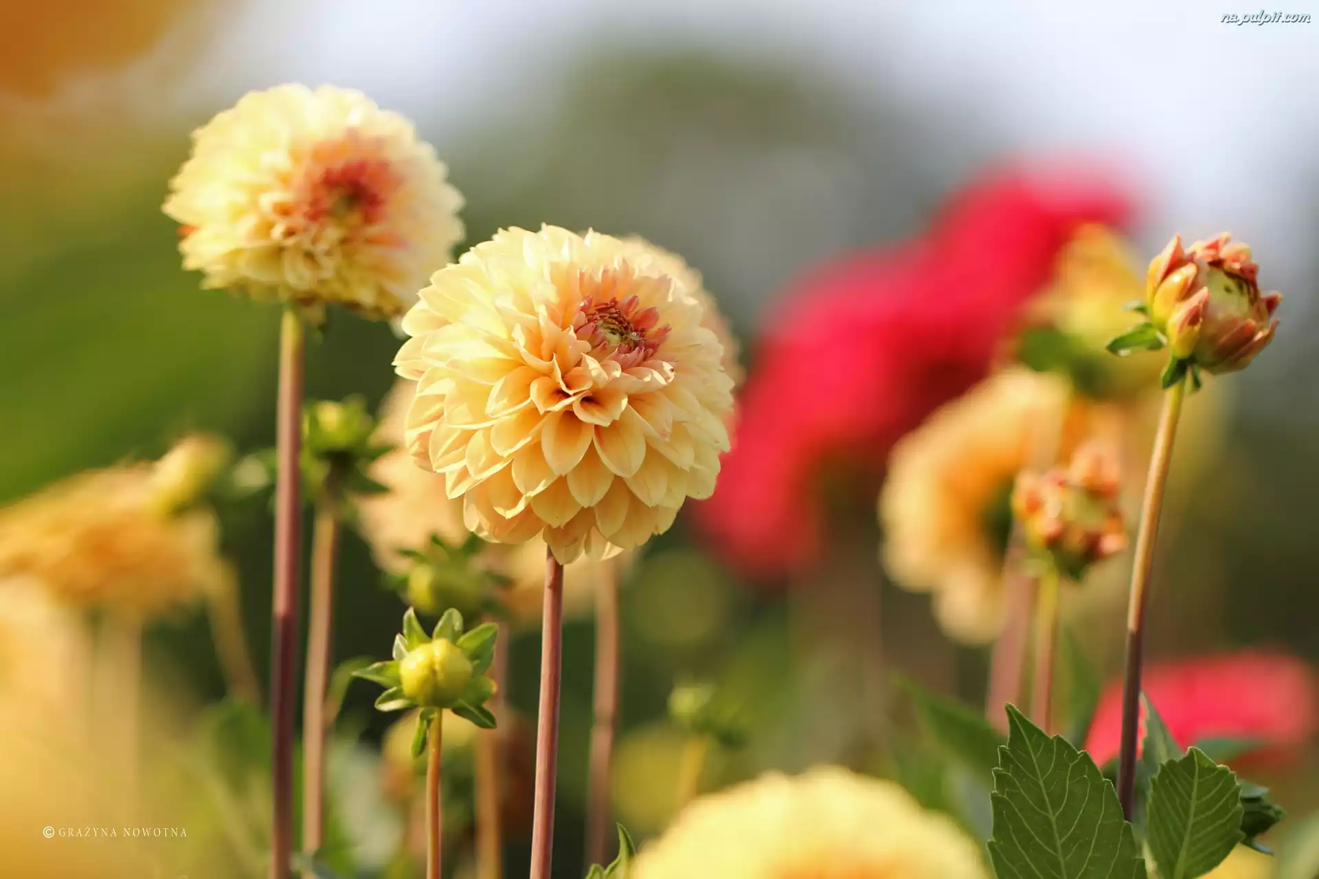 Dalie Fioletowa, Dalia Czerwony, Kwiat Bladoróżowa, Dalia Białe, Dalie Cultivars Kolorowe, Dalie Czerwone, Dalie Dalia Dalia, Żółto, Czerwona Płotek, Dalie, Kwiaty, Biały Łodygi, Dalie, Różowe Kwiaty, Fontanna, Woda Liście, Dalia, Kwiat, Pąk Czerwone, Dalie