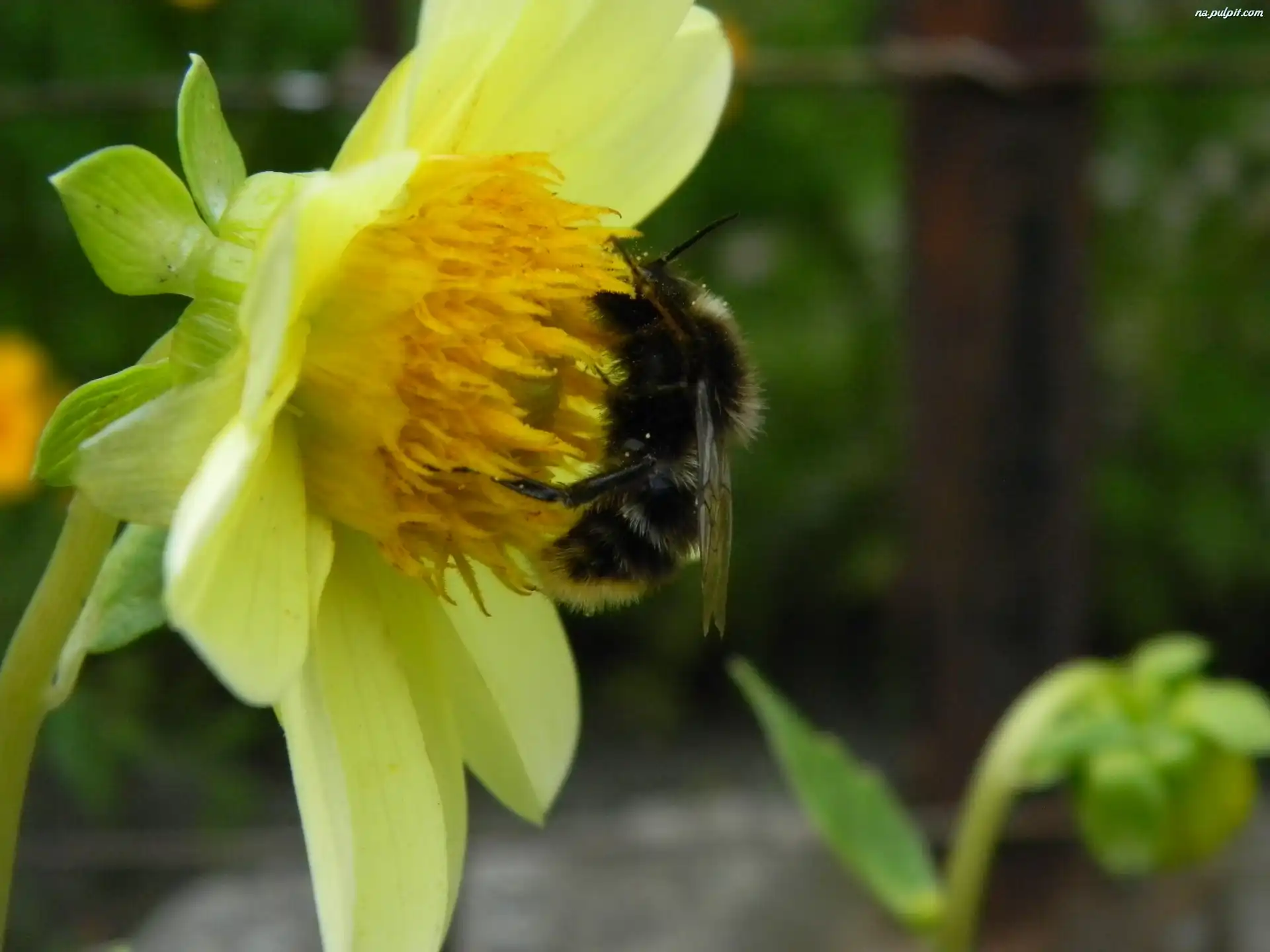 Dalii, Na, Trzmiel, Żółtej Na Pulpit