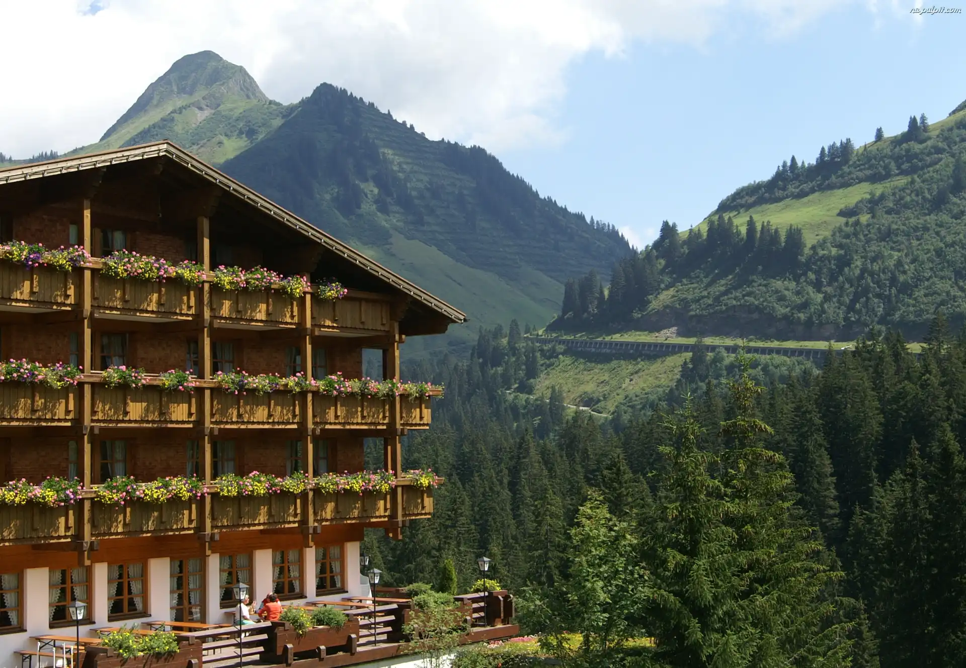 Damuls, Góry, Drzewa, Madlener, Hotel, Austria Na Pulpit