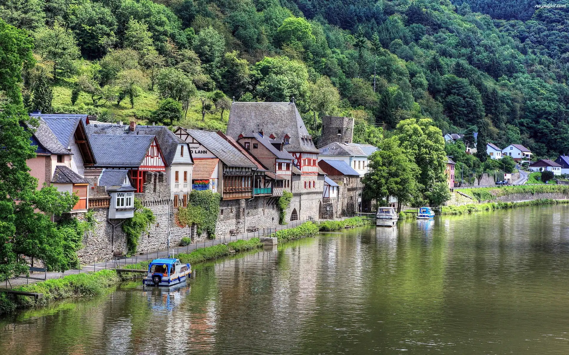 Dauzenau, Domy, Łodzie, Miasto, Niemcy, Rzeka Na Pulpit