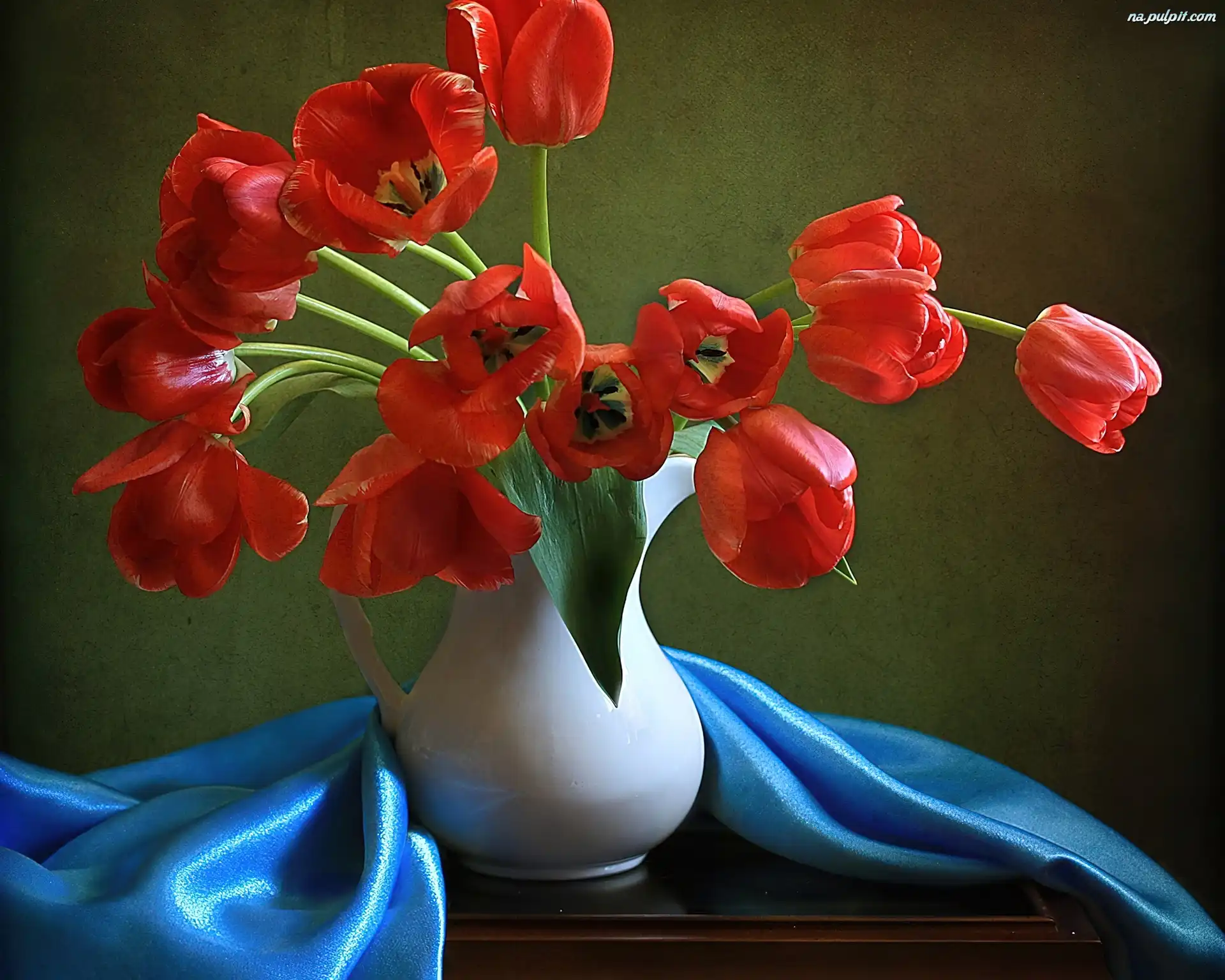 Dekoracja, Wazon, Tulipany, Czerwone, Niebieska Na Pulpit