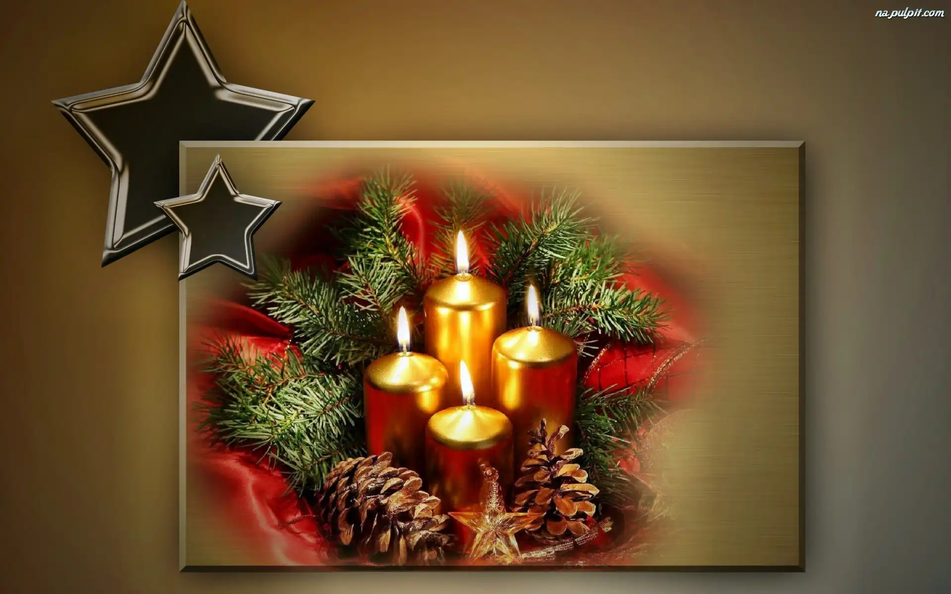 Dekoracja, Świeczki, Złote, Gwiazdki, Świąteczna Na Pulpit
