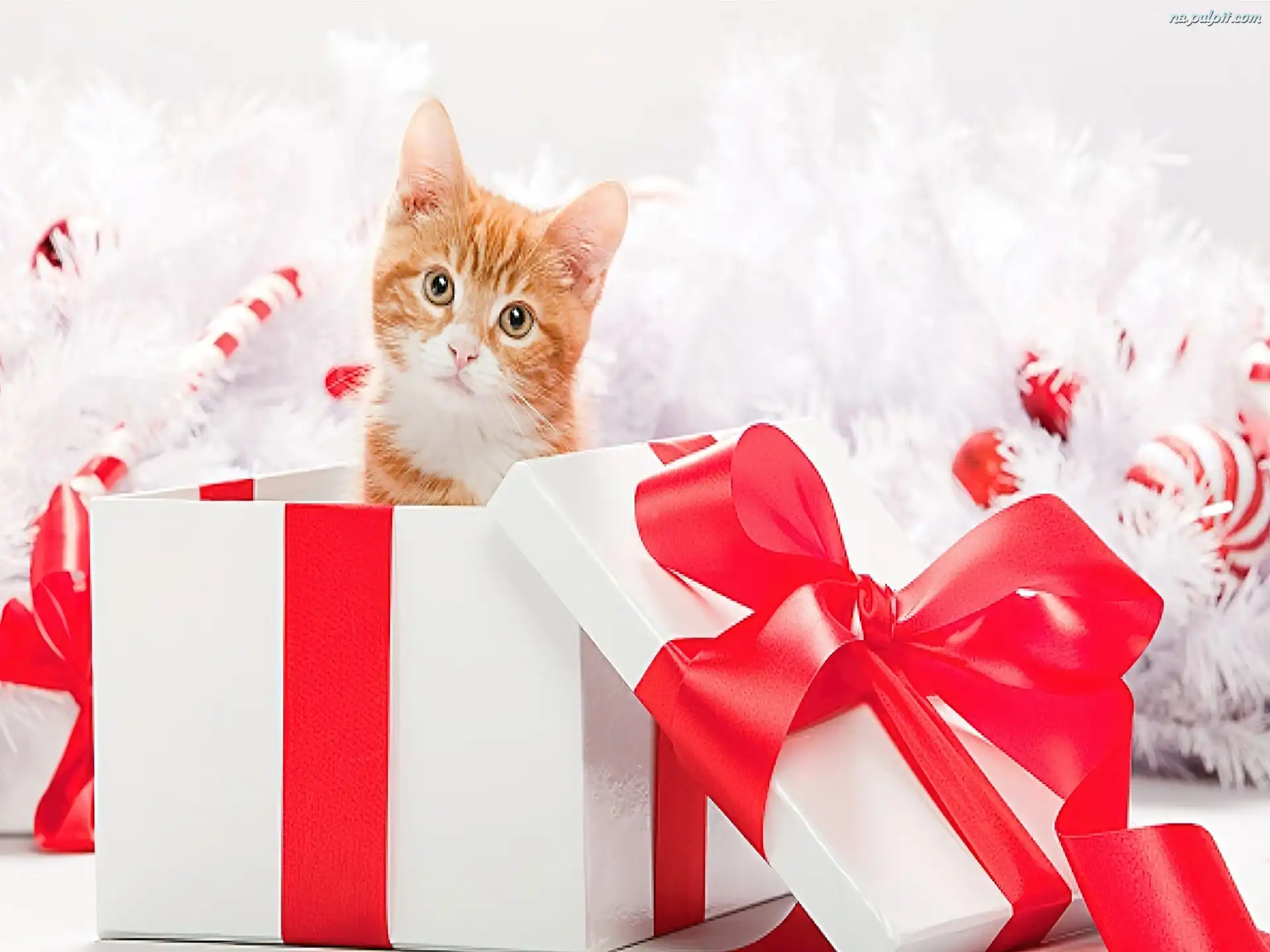 Dekoracja, Kotek, Rudy, Mały, Świąteczna