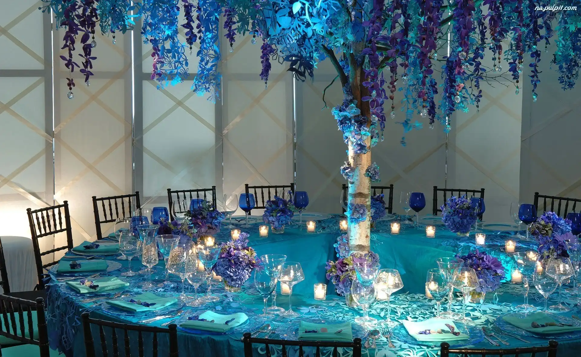 Dekoracja, Nakrycie, Stół, Restauracja, Niebieska