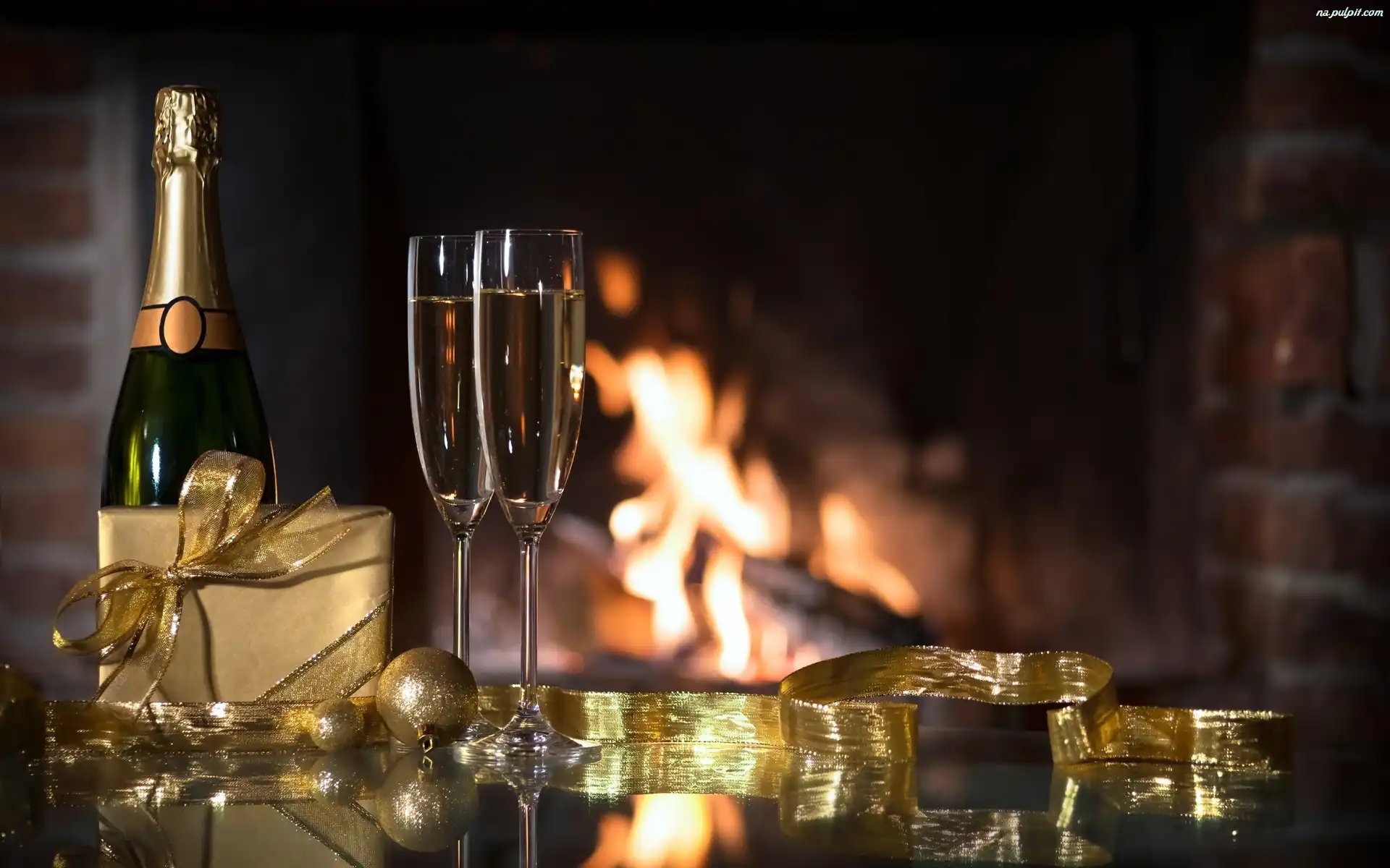 Dekoracja, Bombki, Kieliszki, Szampan, Sylwester