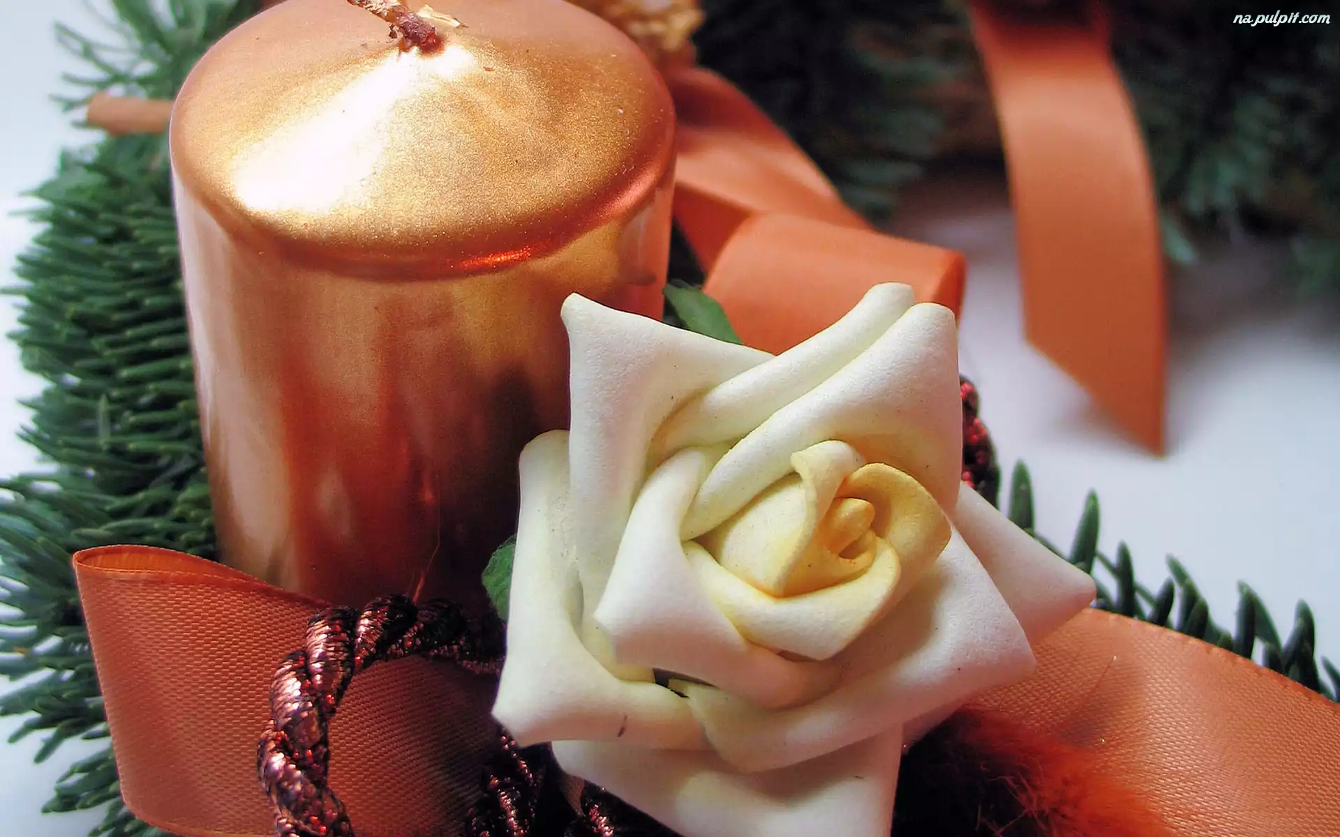 Świeca, Świąteczna, Dekoracja, Róża Na Pulpit