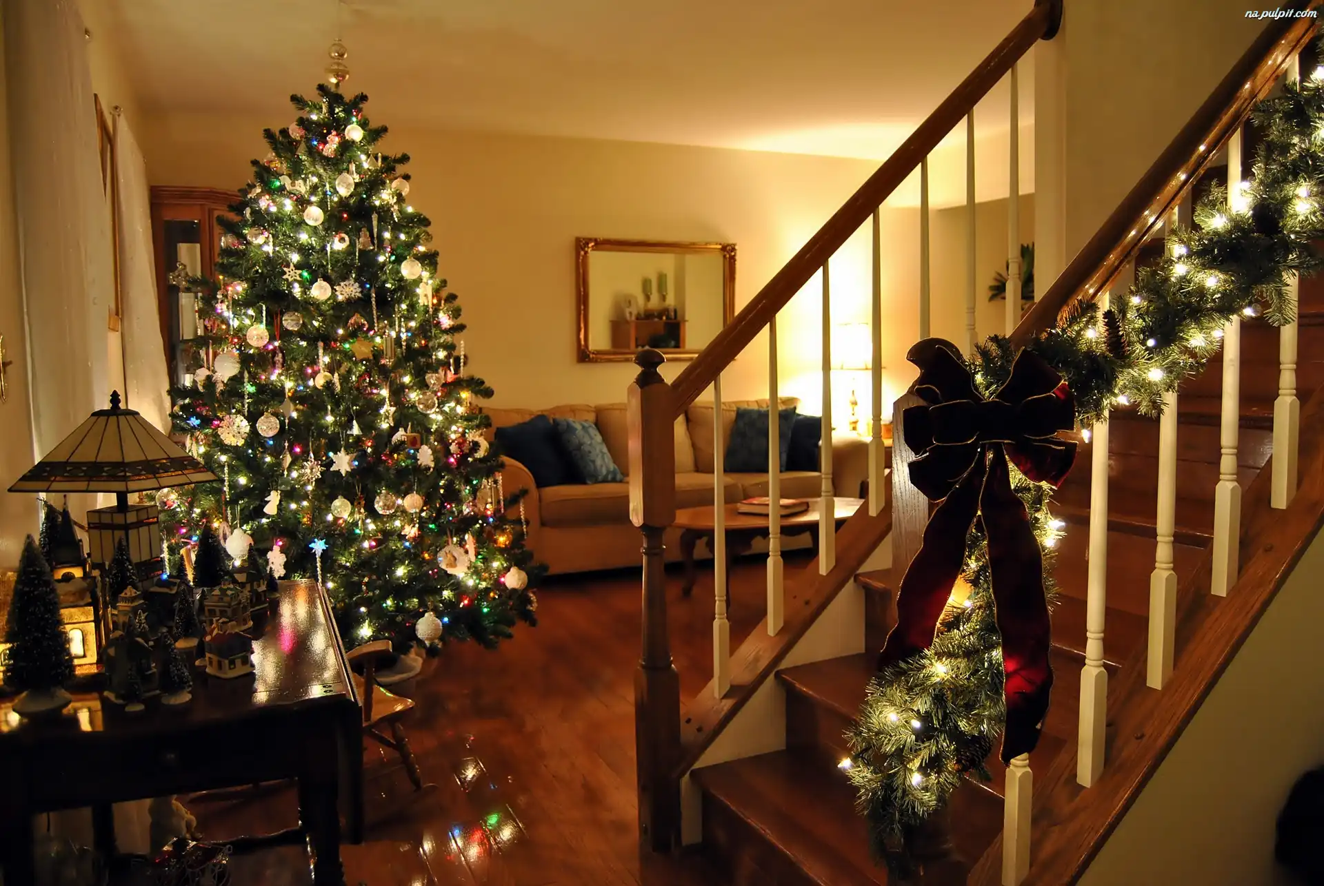 Dekoracje, Schody, Choinka, Salon, ÅšwiÄ…teczne Na Pulpit
