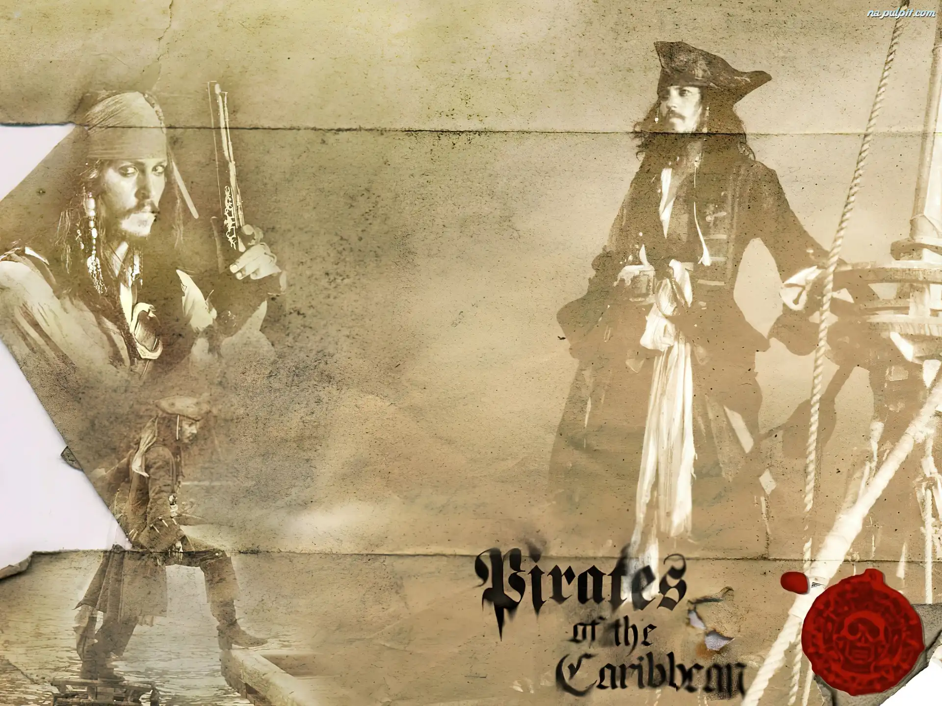 Johnny Depp, kartka, Piraci Z Karaibów, pieczęć Na Pulpit