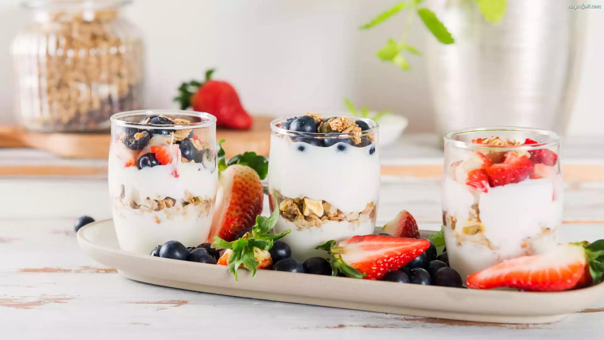 Deser, Jagody, Jogurt, Truskawki Na Pulpit