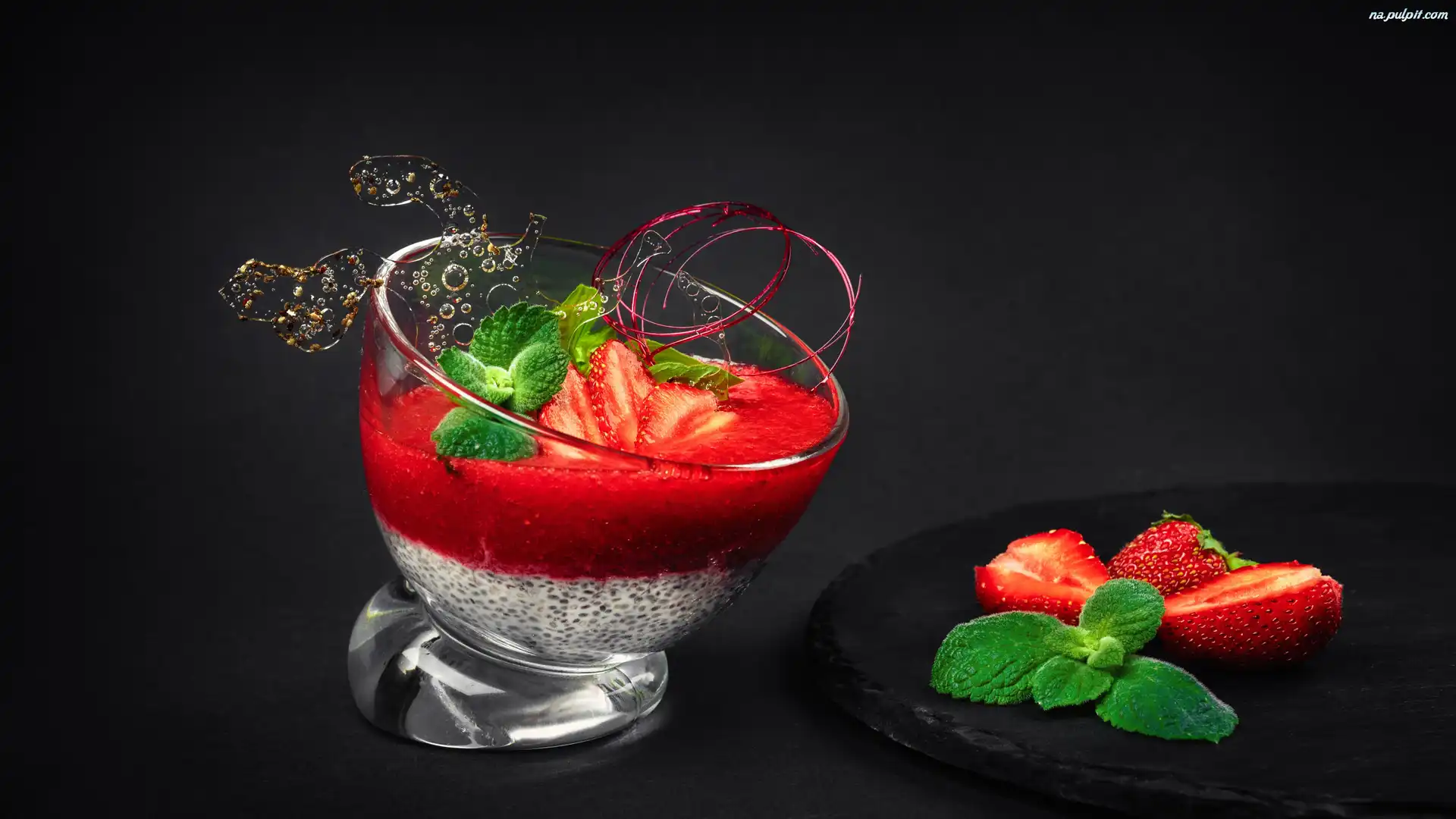 Mięta, Deser, Listki, Deska, Mus, Pucharek, Truskawki Na Pulpit