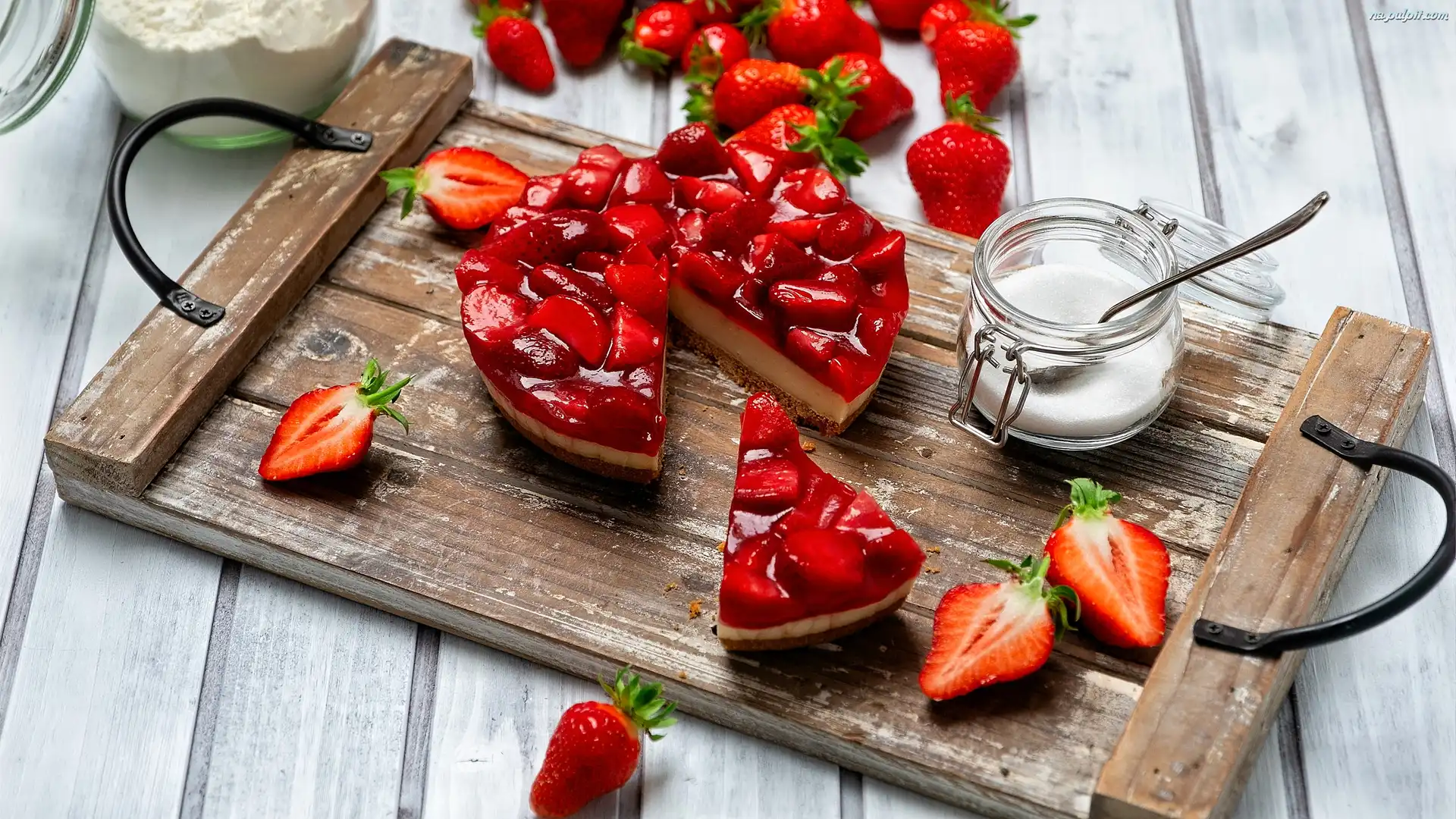 Deska, Słoik, Truskawki, Ciasto, Cukier Na Pulpit
