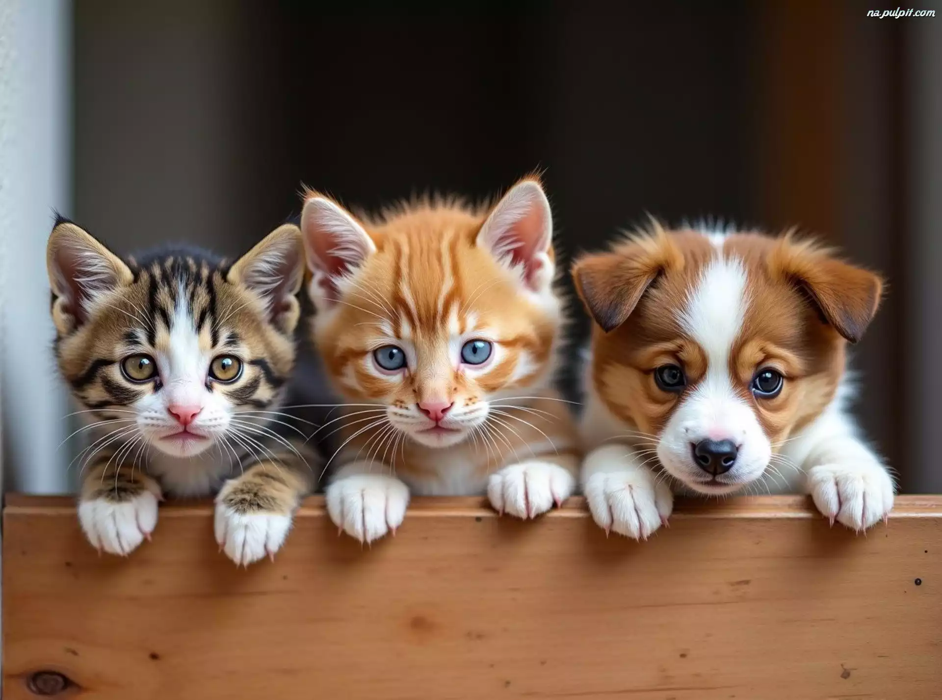 Dwa, Koty, Szczeniak, Deska Na Pulpit